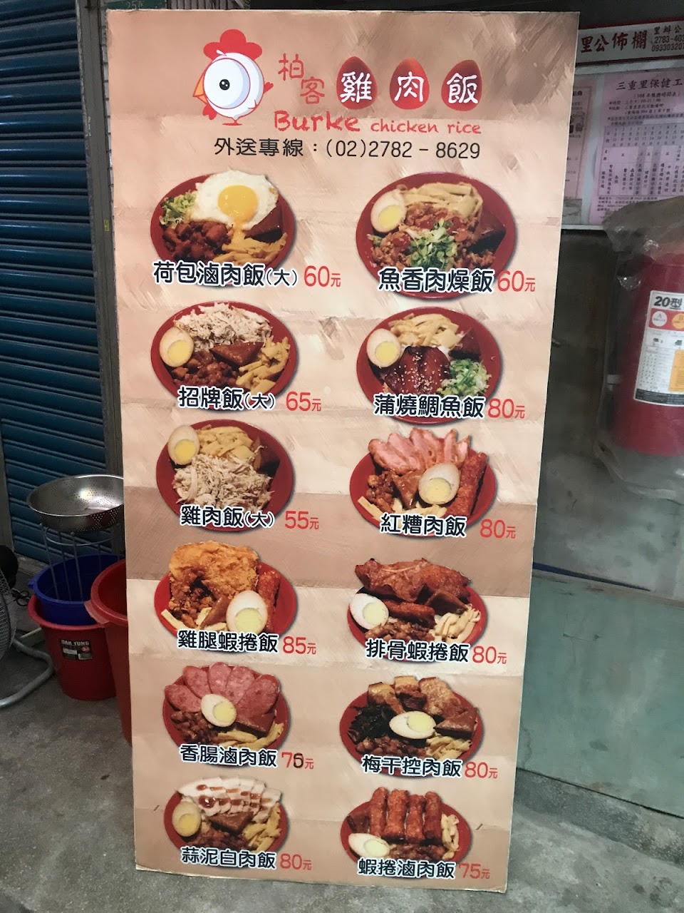 門口菜單圖,紅糟肉飯有蝦捲,進去吃也沒有。