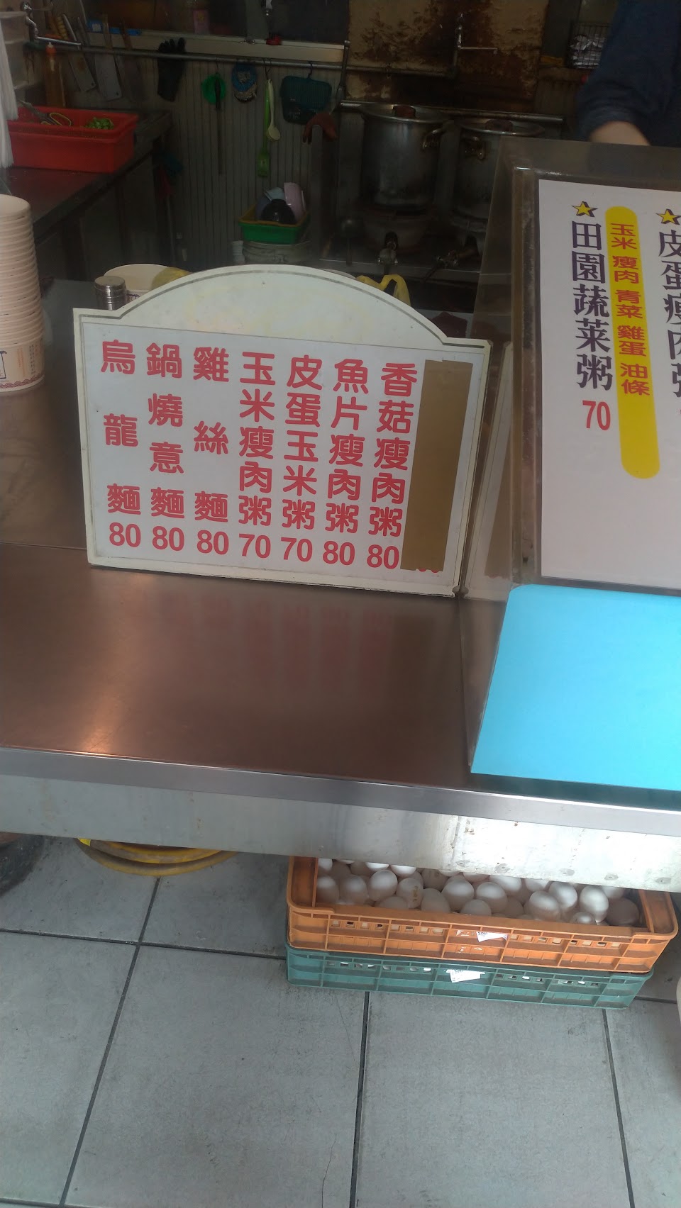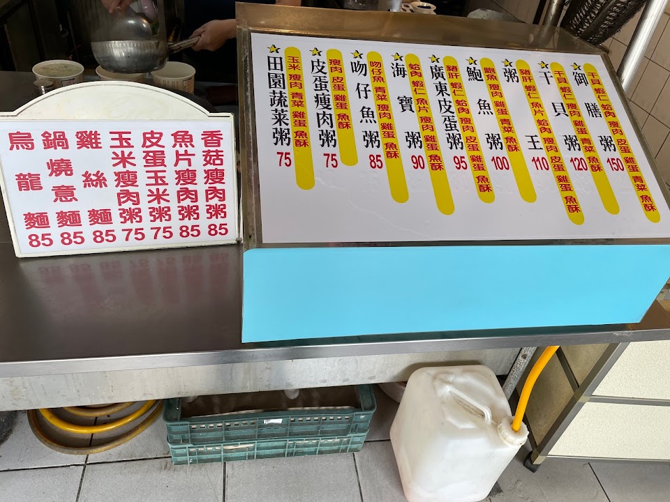 老老闆性子較急了一點點,尤其在人爆多時,但也算正常難免,一碗碗煮,能快到哪,每個點餐的都想馬上取餐。但…我只會在老老闆親自煮粥時才買,而有時會遇到點餐時他在煮…點完後…剛巧換手~~呃…當下會很想取消或和他說煮完再跑…。煮粥功力不是動作帥氣流利就好,老老闆親自煮的粥真的較好吃很多~