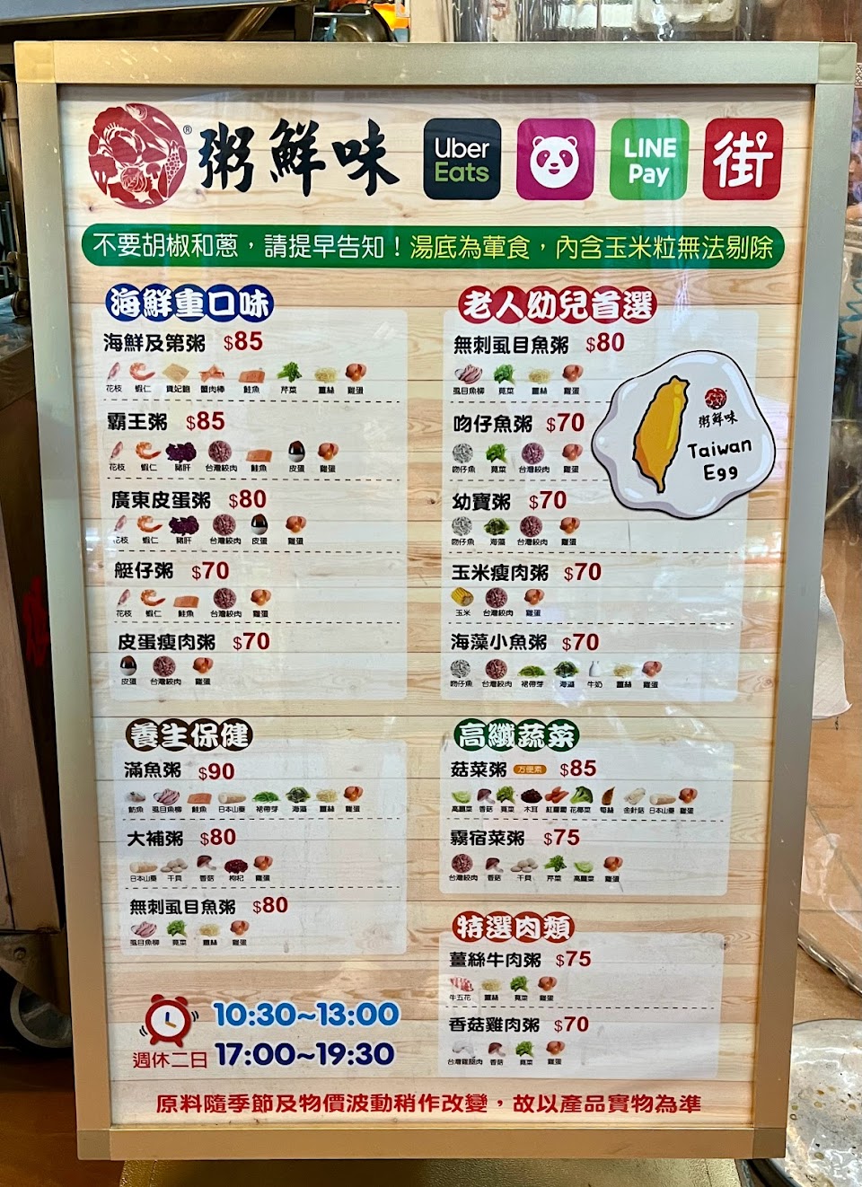 2024最新在地推薦餐廳的菜單_士林粥品 粥鮮味的菜單、圖片