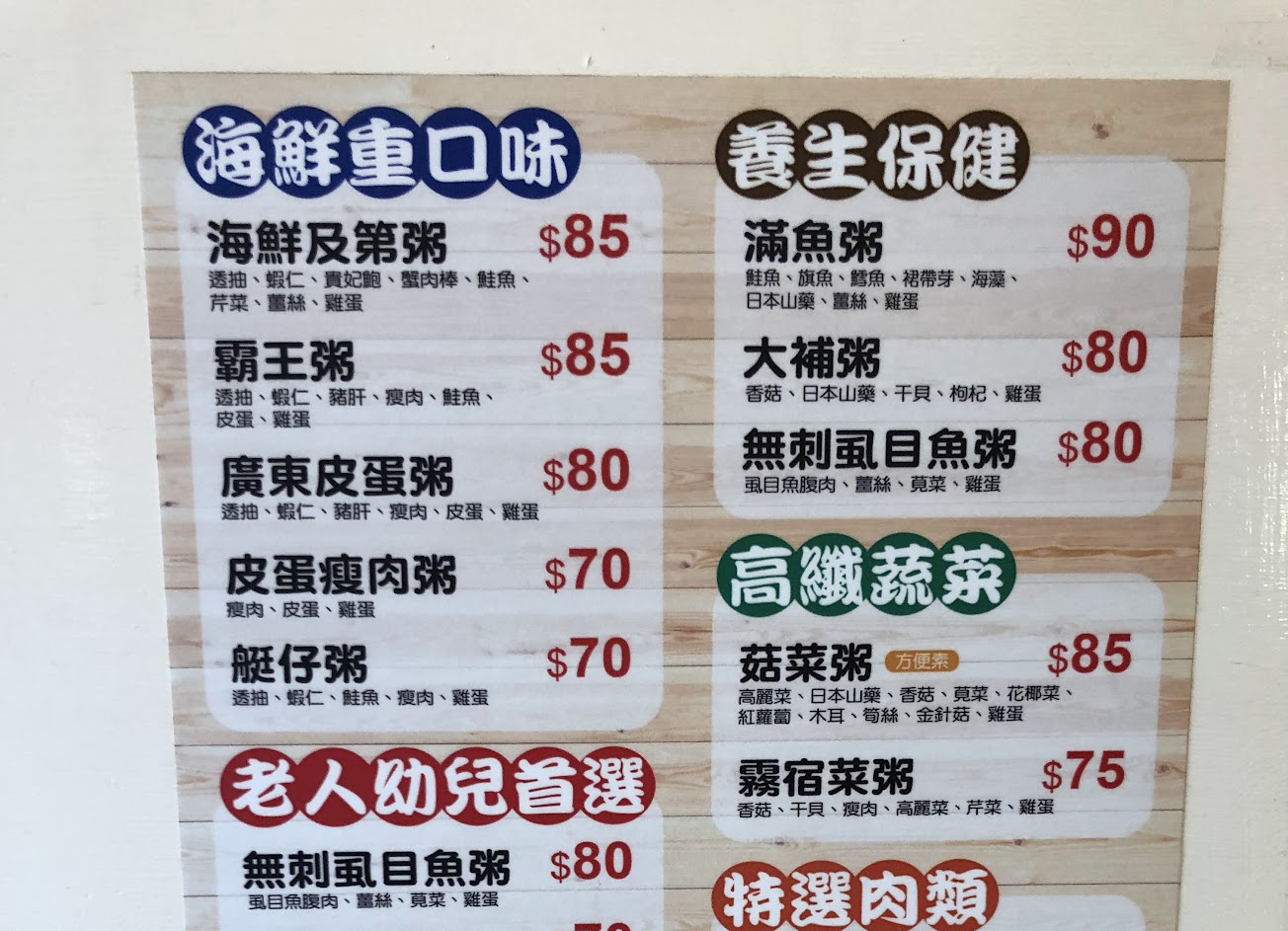 2.粥品種類非常多,選擇多樣,各擇所須,感覺店家很用心在粥品內容的設計上,都各有特色!