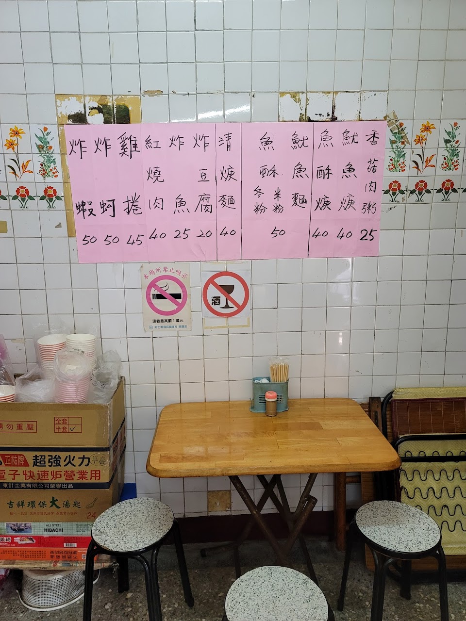 其實它算早餐店,雞捲味道尚可,45元平價。肉粥也不錯吃,但下午1點到場點餐的我,端上來的粥,已經撈不到香菇,會覺得很衰、有差別