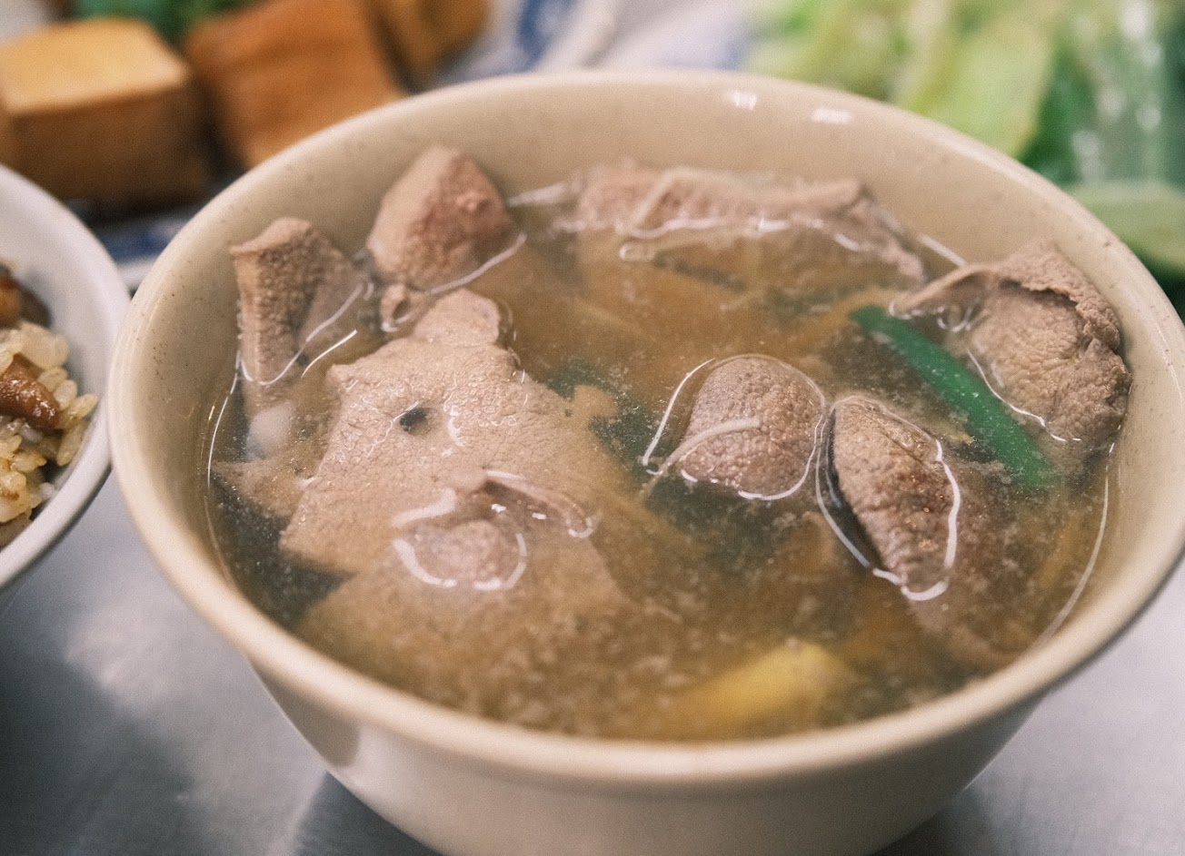 天母人應該都熟悉的在地小吃,開到宵夜。扛下店名招牌的滷肉飯肥瘦均勻,飯粒飽滿粒粒分明搭配爽口醬瓜相當優秀;油炸小菜們看似價位不低但份量十足酥脆不油膩非常美味;燙青菜搭配蒜蓉甜油膏清爽提味;豬肝湯必點柔嫩彈牙不帶血水份量超足夠;阿伯阿姨們忙起來也仍然親切,整體值得推薦!