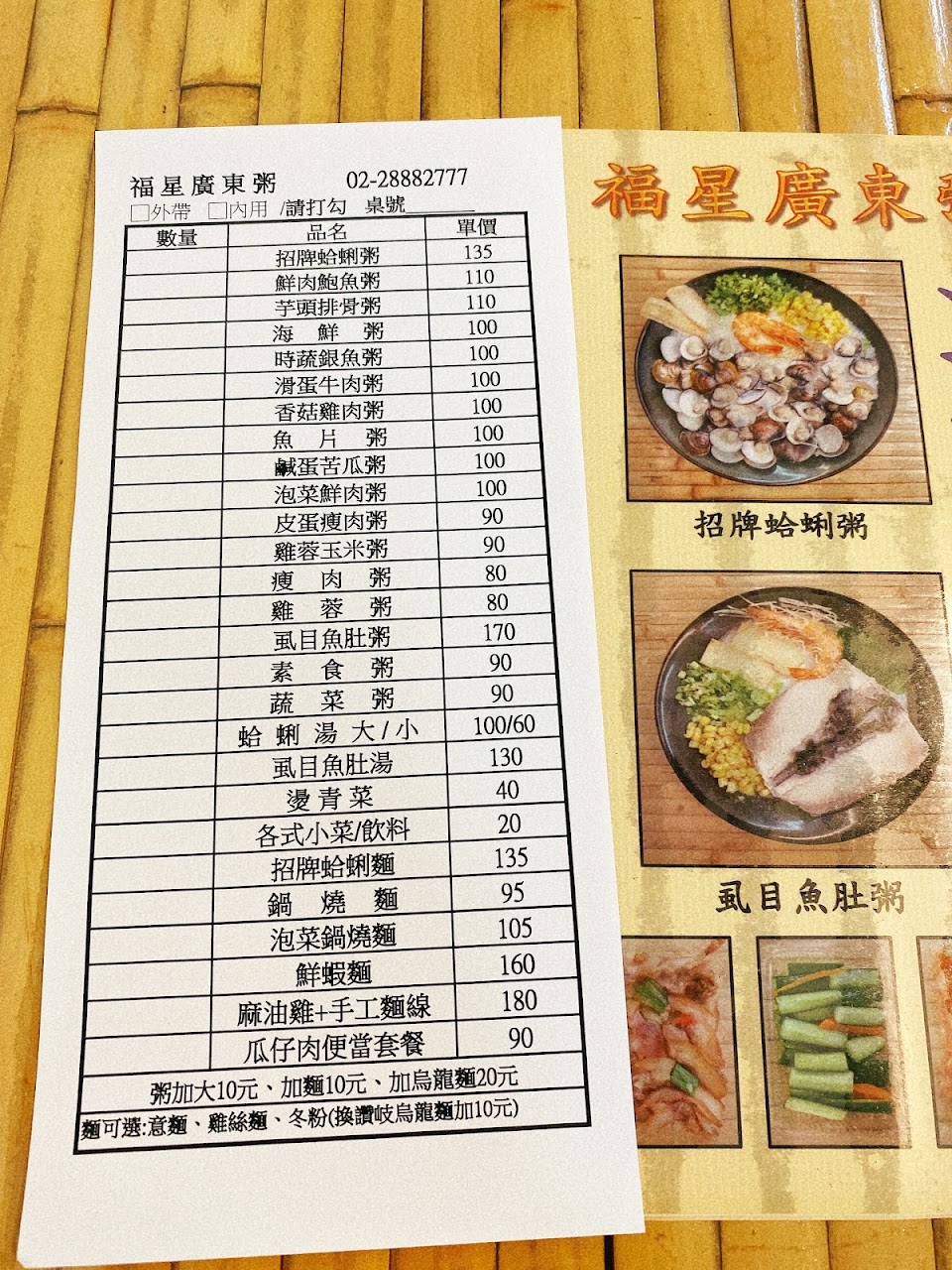 2024最新在地推薦餐廳的菜單_福星廣東粥蛤蜊麵 士林店的菜單、圖片