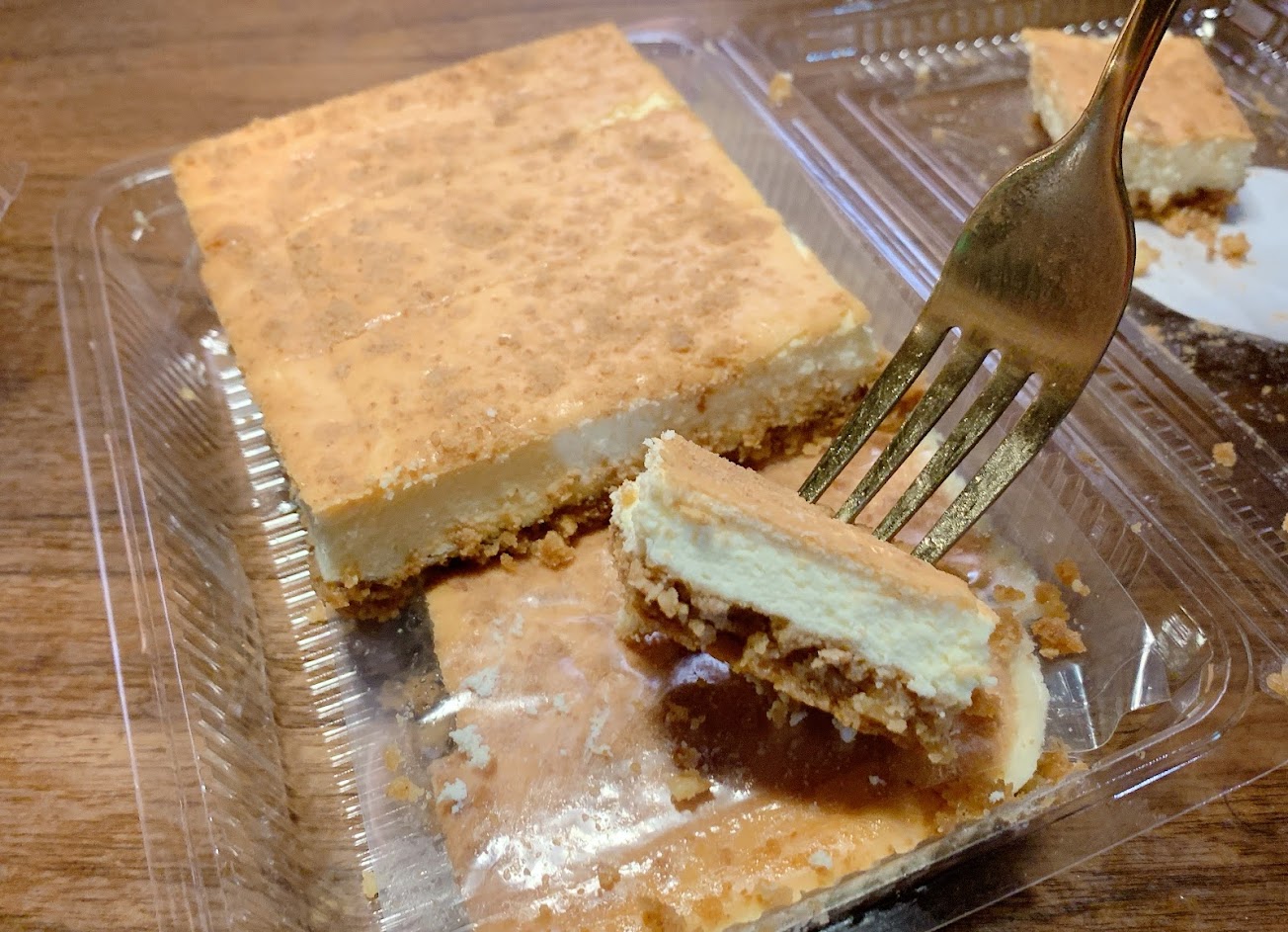 只收現金哦。原本起士蛋糕下面都會有薄薄一層餅乾,起士餅感覺是把餅層加一些乾果碎粒、加厚一些,然後蛋糕層變薄一些,這樣較方便直接拿著吃,看各人需求,我是喜歡這樣,直接配黑咖啡。不用再去切蛋糕,小心轉移到盤子上,也省了使用盤子、叉子。提供參考。