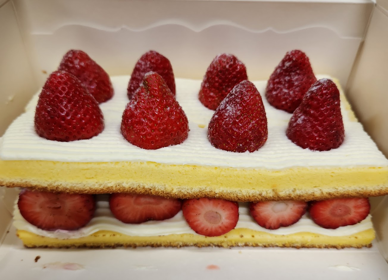 一直看不出來雙層跟生乳差在哪~ 都是鮮奶油夾餡跟草莓,一吃就立馬分出高下,雙層真的很普通,生乳好吃很多很多,蛋糕濕潤度,生乳等級的鮮奶油,就連草莓我都覺得比較香甜多汁(但應該是同一批才對啊?)
