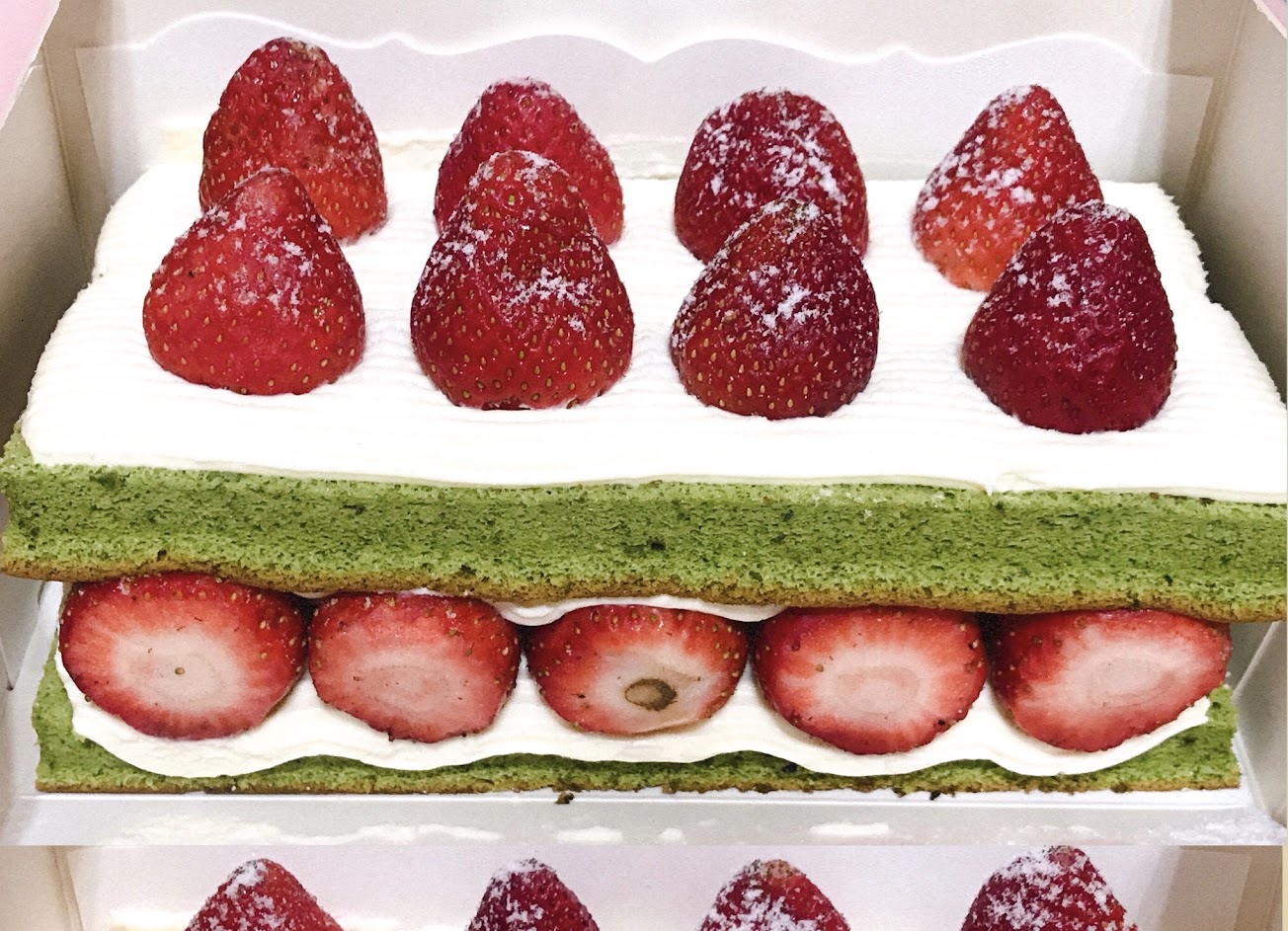 買了抹茶雙層草莓蛋糕跟原味雙層草莓蛋糕
