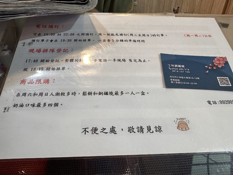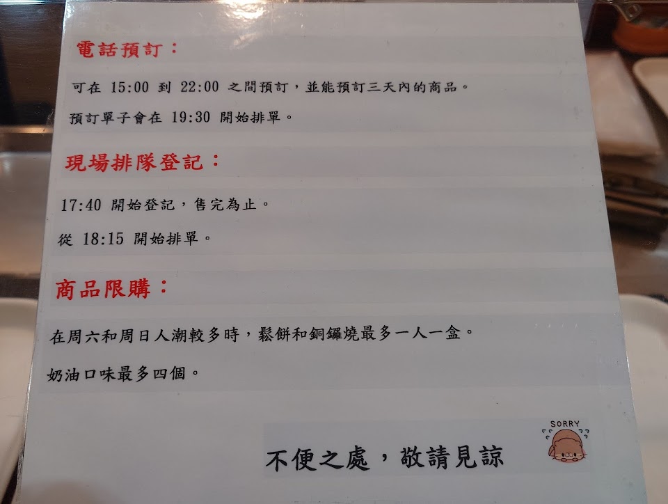真的是20年前懷念的味道,在士林夜市還沒改建成地下美食街時必買的點心,改建後就不知道老闆搬到哪去,市面也看不到這種的鬆餅銅鑼燒。需要先電話預約,現場很難買到,餅皮鬆軟又Q彈,內餡飽滿不會太甜,非常好吃。
