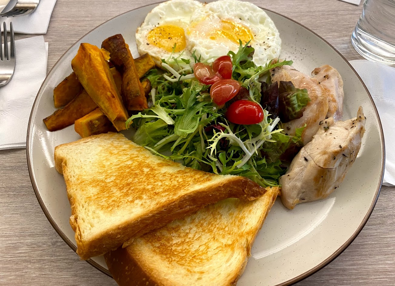食材用得不錯, 食物口味清爽 , 份量夠 雞胸肉跟鮭魚吃起來很清淡 用餐環境裡外都滿有格調的, 給人一種舒適的感覺 價位上偏貴