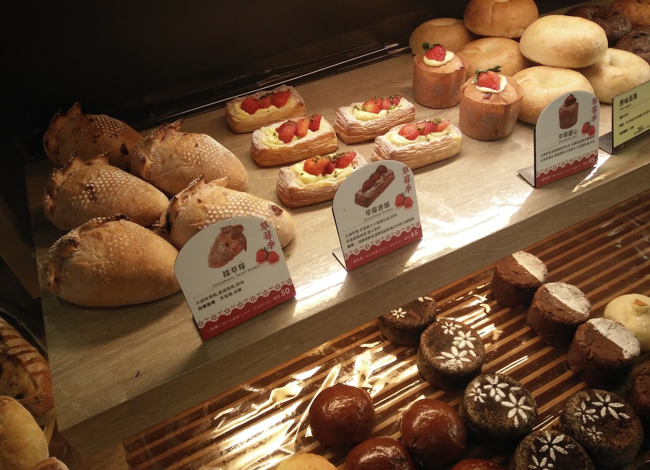 買了二種麵包:帕瑪森起司、草莓干貝果,都不錯吃。前者中規中矩;後者第一口讓我驚喜,貝果Q軟、吃得到草莓干的香氣,只可惜草莓干及餡料不多。