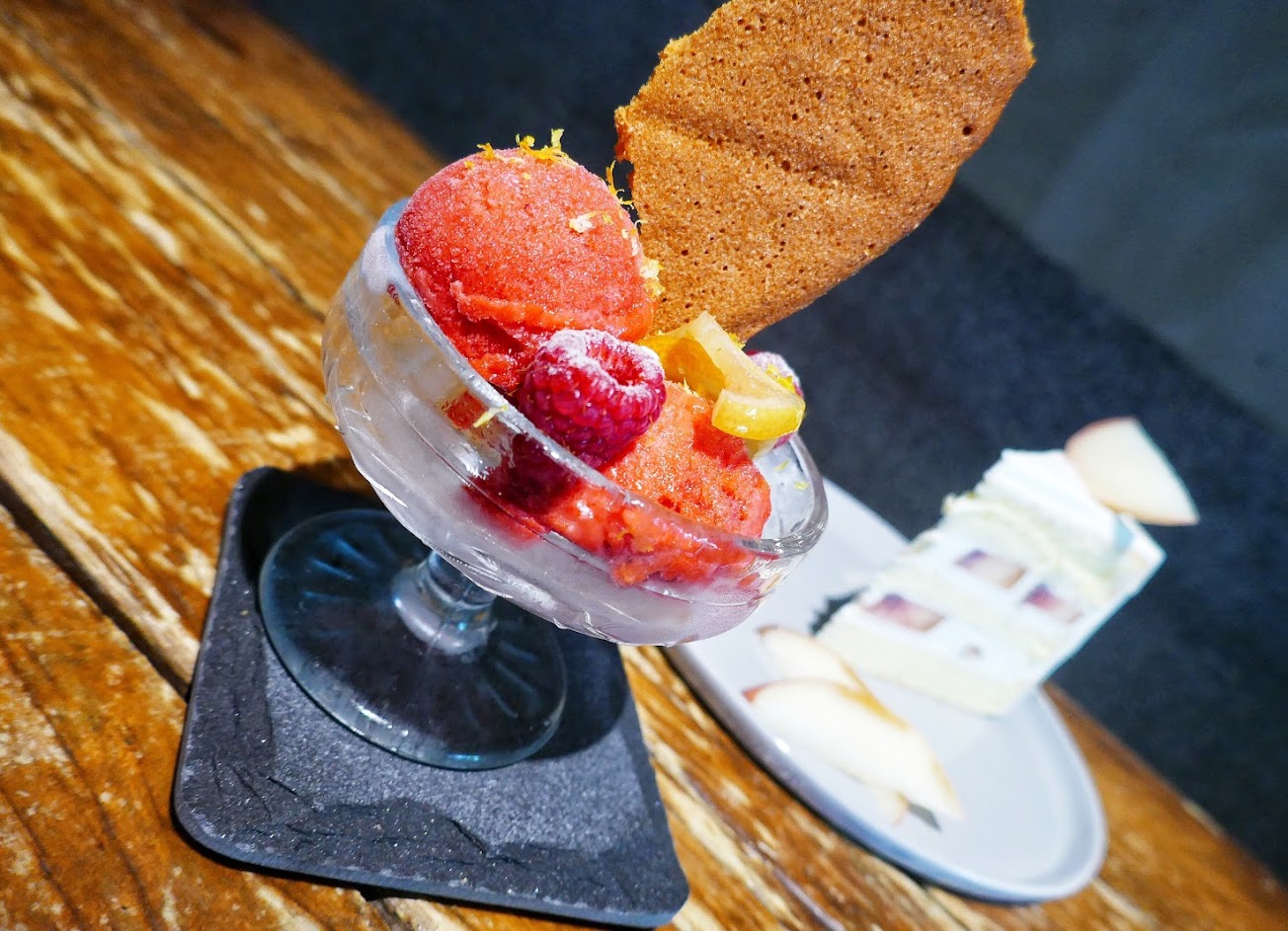 甜點很好吃,磅蛋糕略乾,不算特別好吃,檸檬戚風很好吃,檸檬奶油酸甜酸甜,特別鬆軟蛋糕非常好吃。