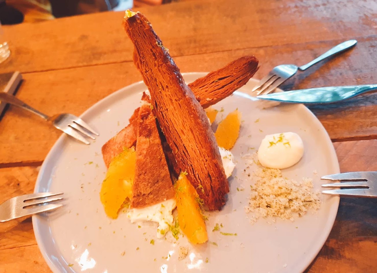 今年再訪每年夏季都會有的夏日小酒館晚餐,每道菜都令人驚艷,紹興雞翅一咬下濃郁酒香便充斥口腔,臘腸馬鈴薯搭配酸奶很清爽,最後沒想到最喜歡的一道會是乾煎芥蘭佐蛋黃醬!喜翻~