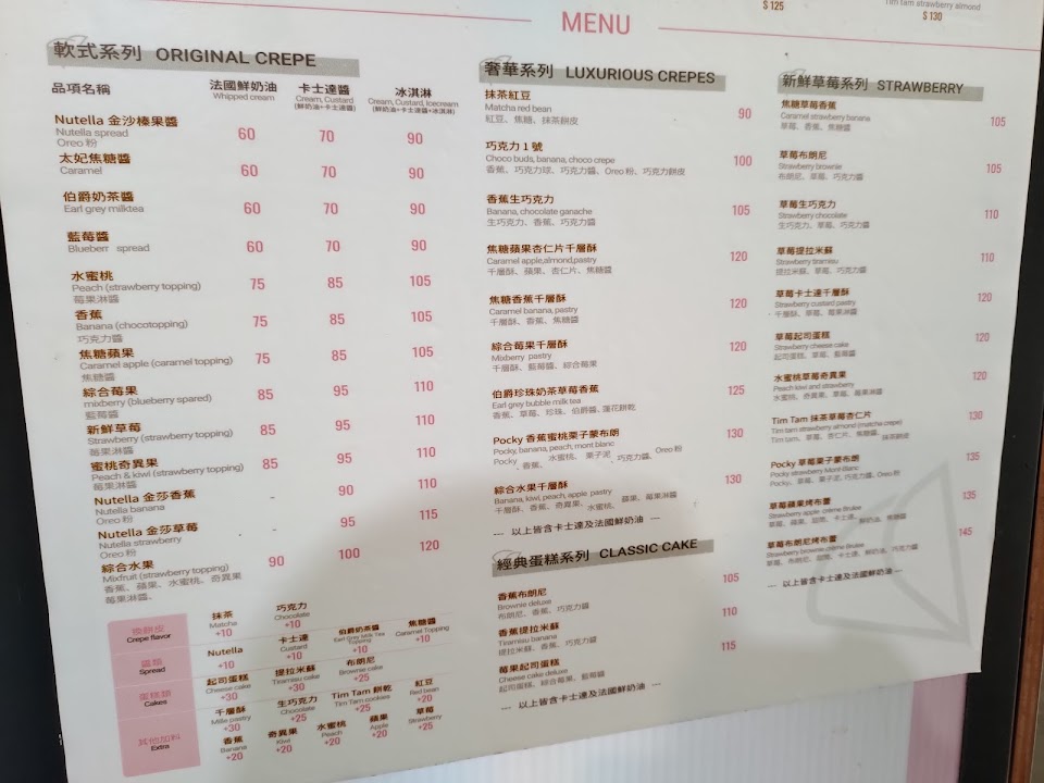 法式的軟式可麗餅,有別於日式脆皮口味。