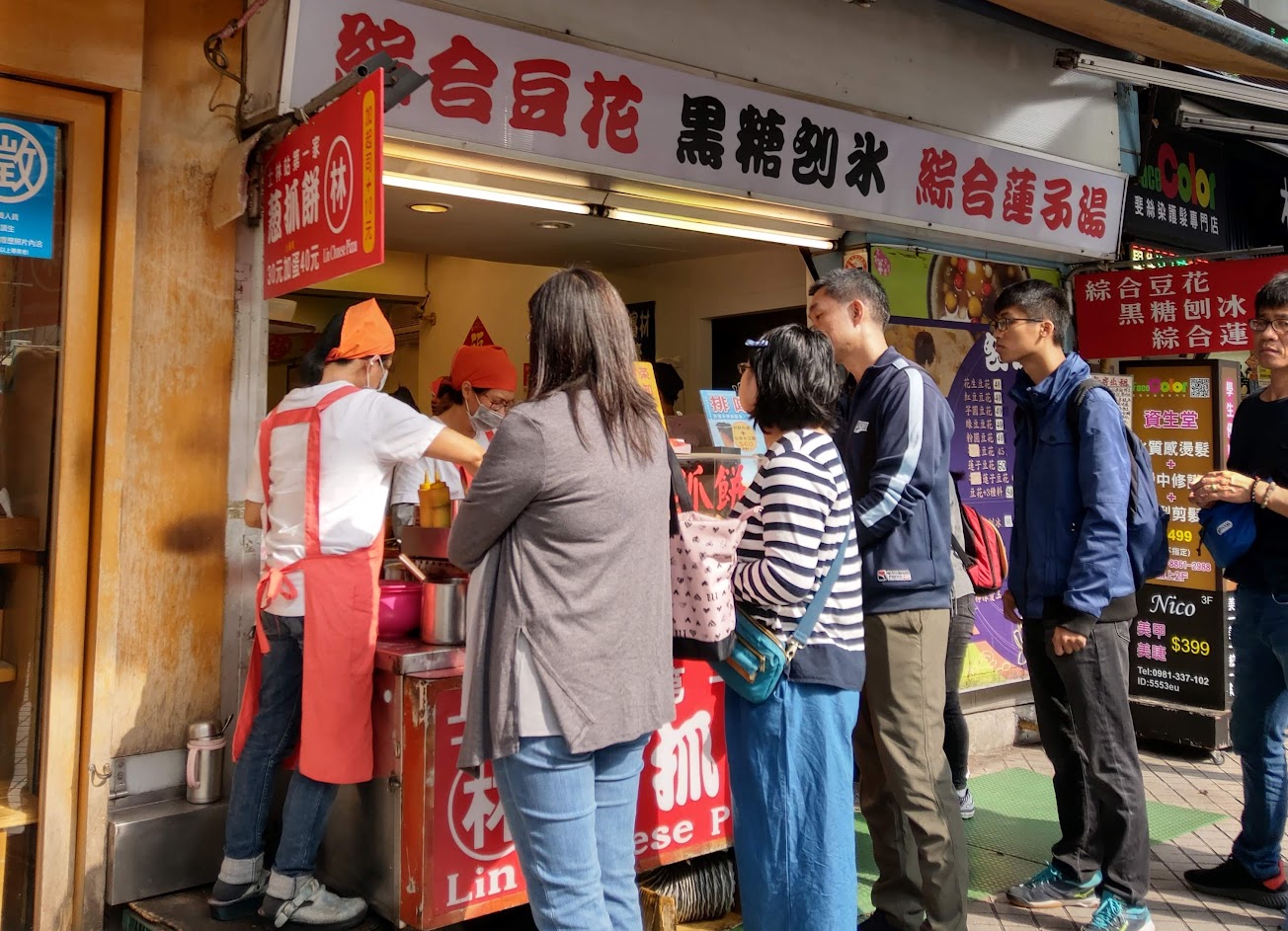 身為一位在外求學的遊子,當然不會放過外地的美食。在上學通勤到士林捷運下車出站,總是看到有長長的隊伍,排在早晨走滿學生的台北街頭。在一次同學的排隊之下,我也嘗試了此地的蔥抓餅。這樣的餅我還是第一次見過,其實蔥抓餅吃來都大同小異,但我從沒遇過能在裡面放九層塔的方式,煎的香酥的餅皮包著畫嫩的熟蛋,九層塔的香味完全不會被濃鬱的醬油所蓋過,可謂新奇的體驗。