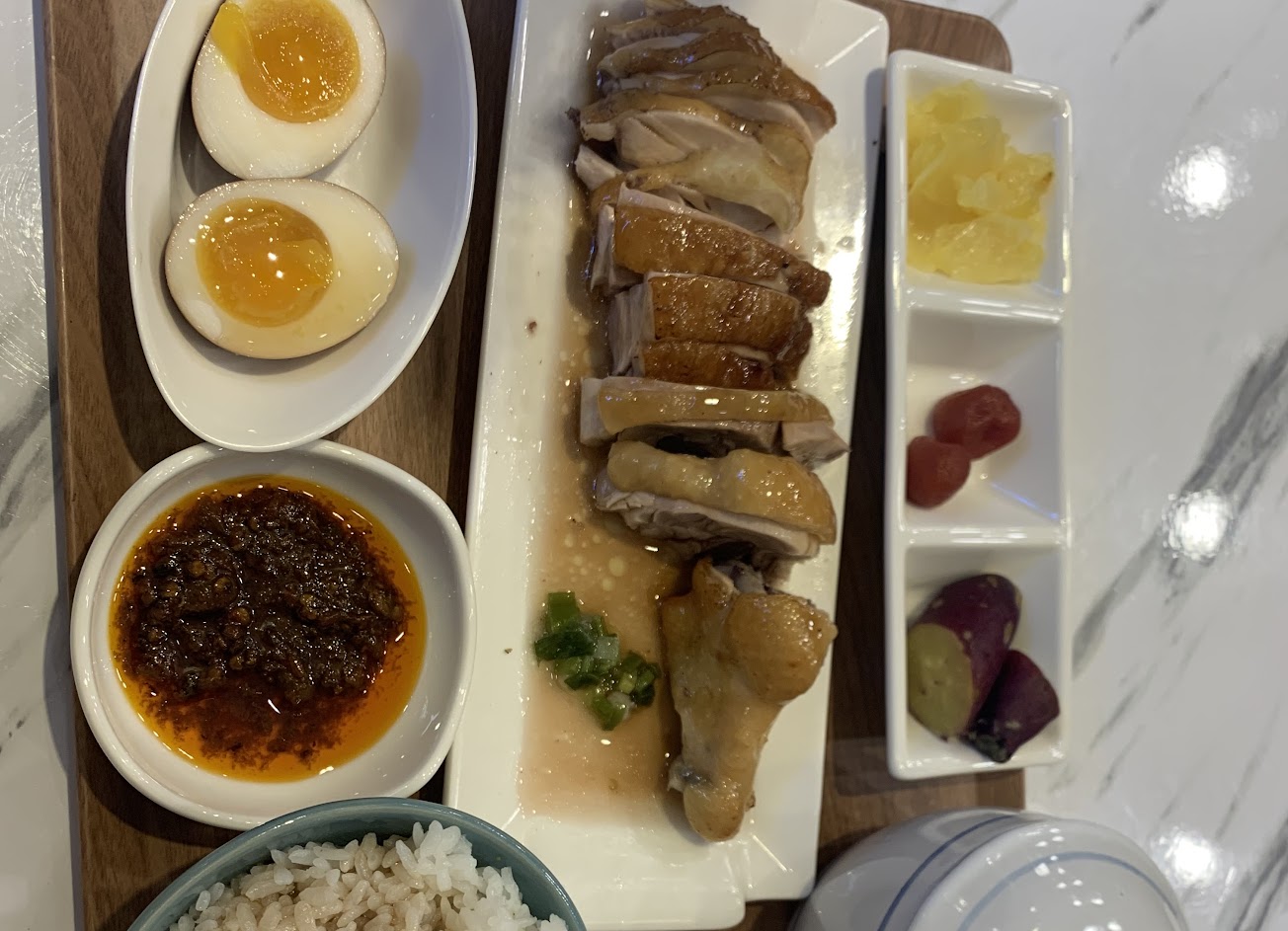 青菜 雞湯 糖心蛋跟白飯都很好吃 最可惜的就是最重要的雞肉不優 如果想讓生意更好 建議去南機場夜市的山內雞肉飯取經 雞肉品質提升上來 我想生意會火爆的