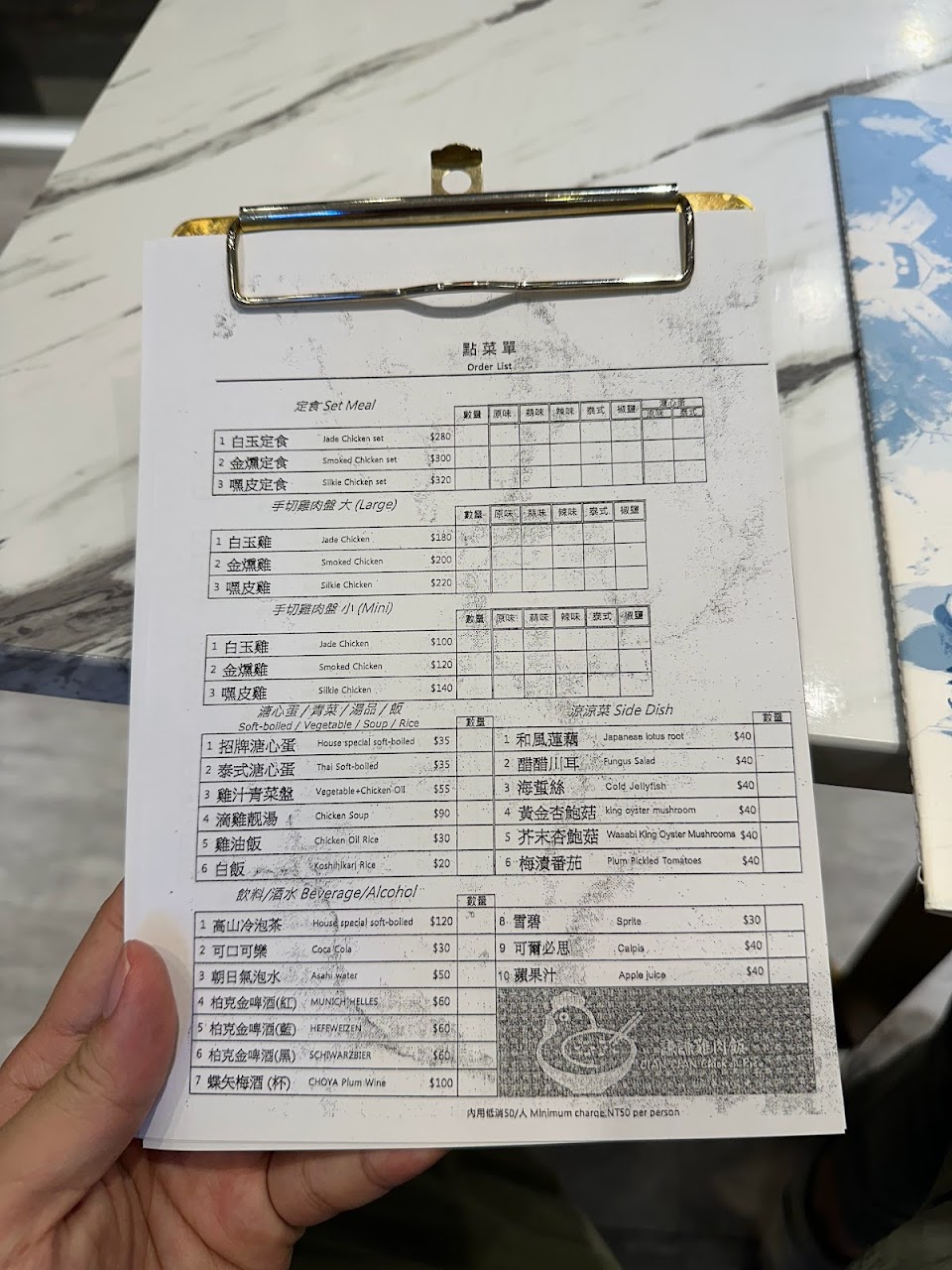 低消50元。可以多人合吃~到訪當天為四人用餐!點一份套餐一份單點,店員有幫我們附上4人份餐具~很細心!