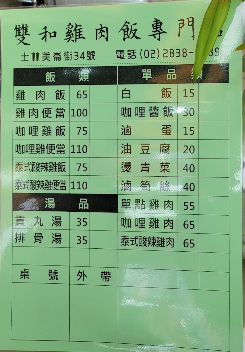 2024最新在地推薦餐廳的菜單_雙和鴨肉專門店/嫩雞飯/士林美食/午餐/晚餐的菜單、圖片