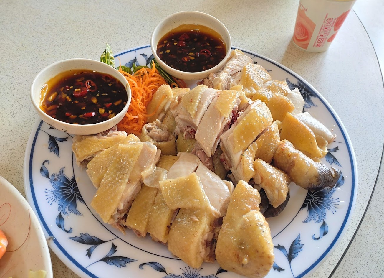 白斬雞很好吃,隔壁桌點脆皮雞,看起來也很可口。