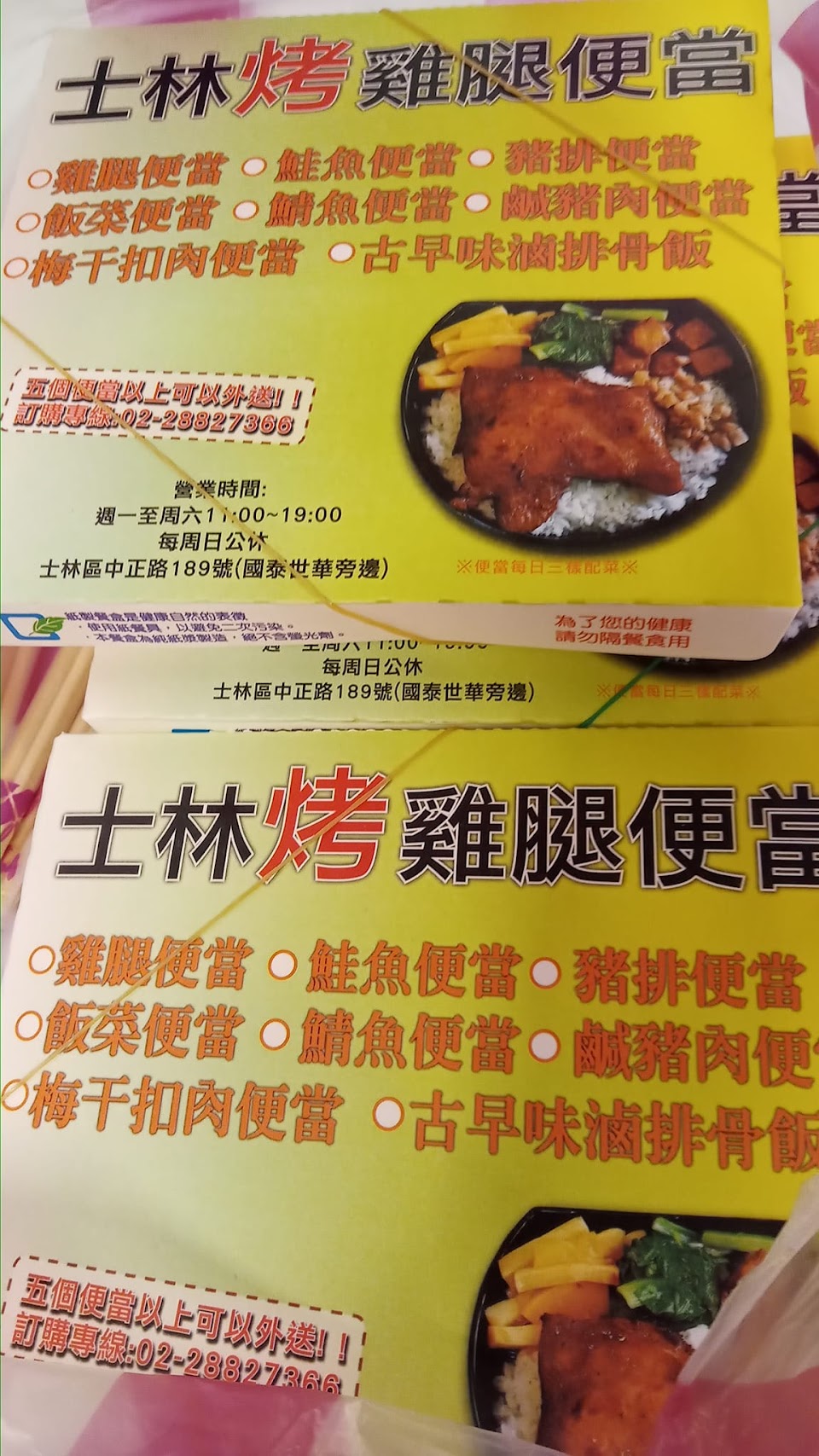 烤雞腿很大~在外送平台上還能用店內價90元點到一個雞腿便當覺得CP值超高~而且雞腿跟豬排都好香?美中不足的是豬排有一點筋,小塊了一點,配菜中規中矩,但不會很油跟鹹~整體來說很好了,如果有想吃外食但有要飲食控制覺得很合適 …