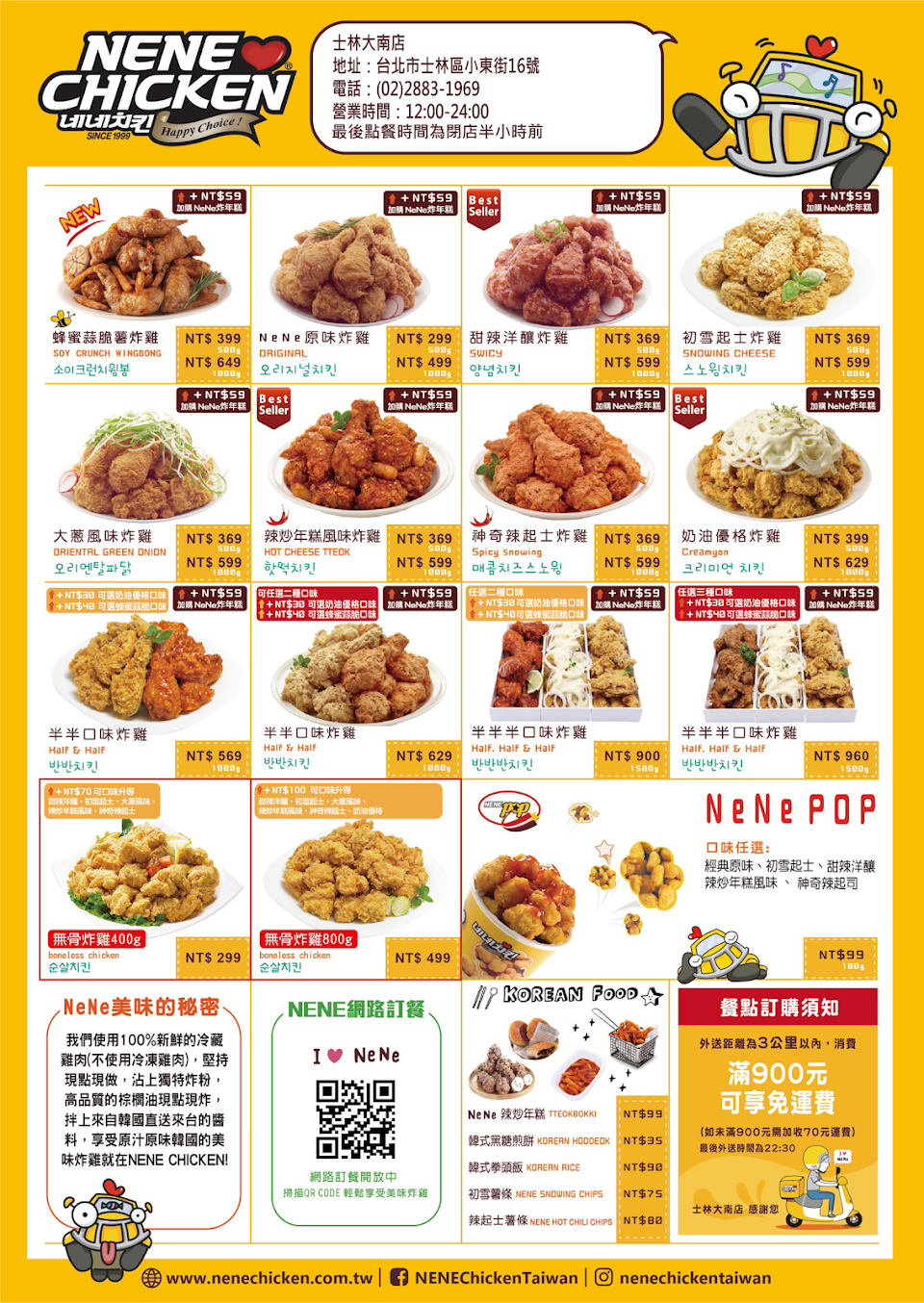 2024最新在地推薦餐廳的菜單_NENE CHICKEN士林大南店的菜單、圖片