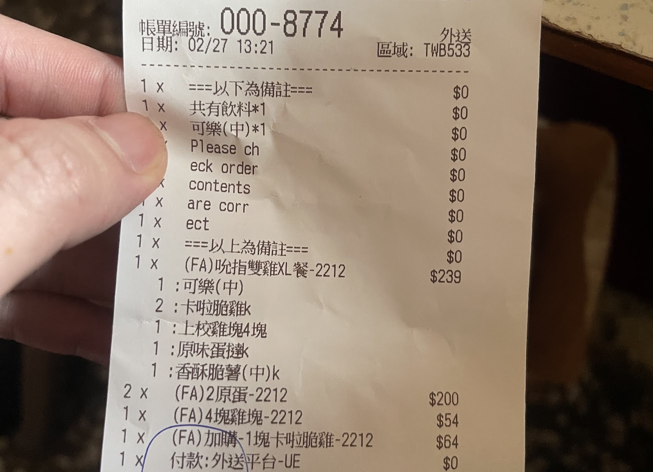 首先,到現場要先排隊結帳,取得一張[取餐號]