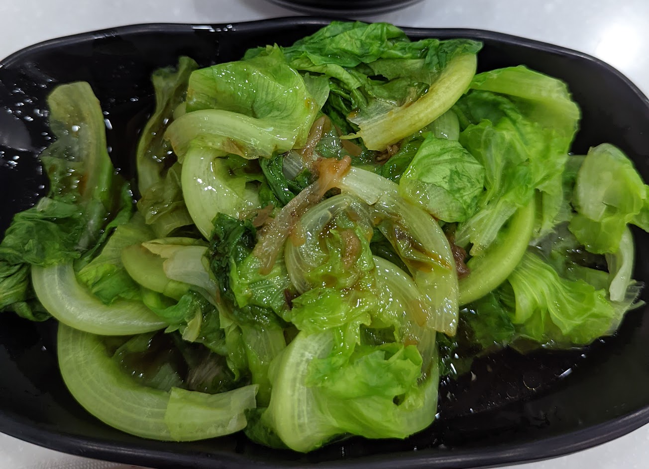 冬天的燙青菜是高麗菜,淋上店家的醬汁。