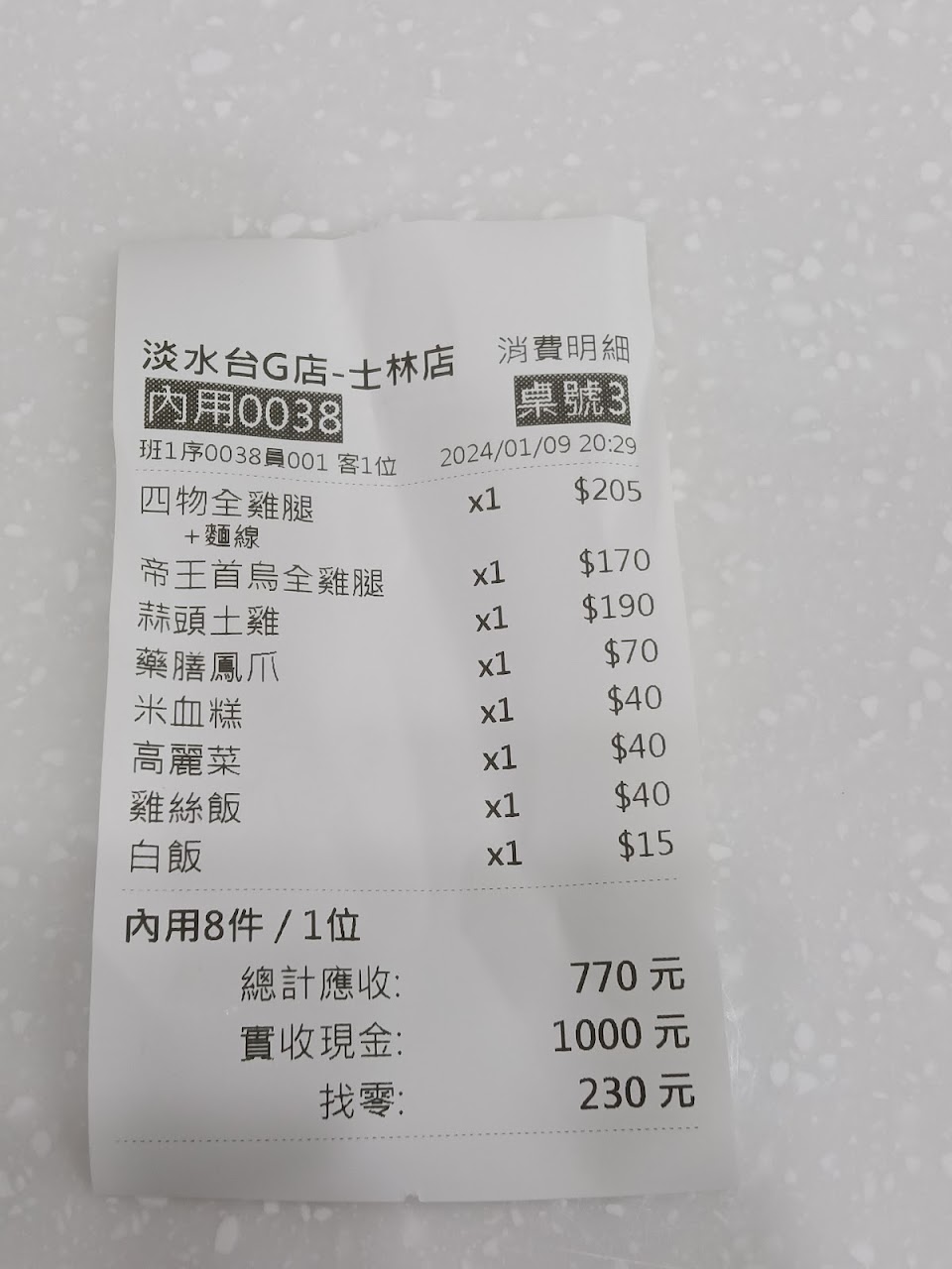 昨天點的四物土雞湯肉很有彈性,湯頭蠻好喝