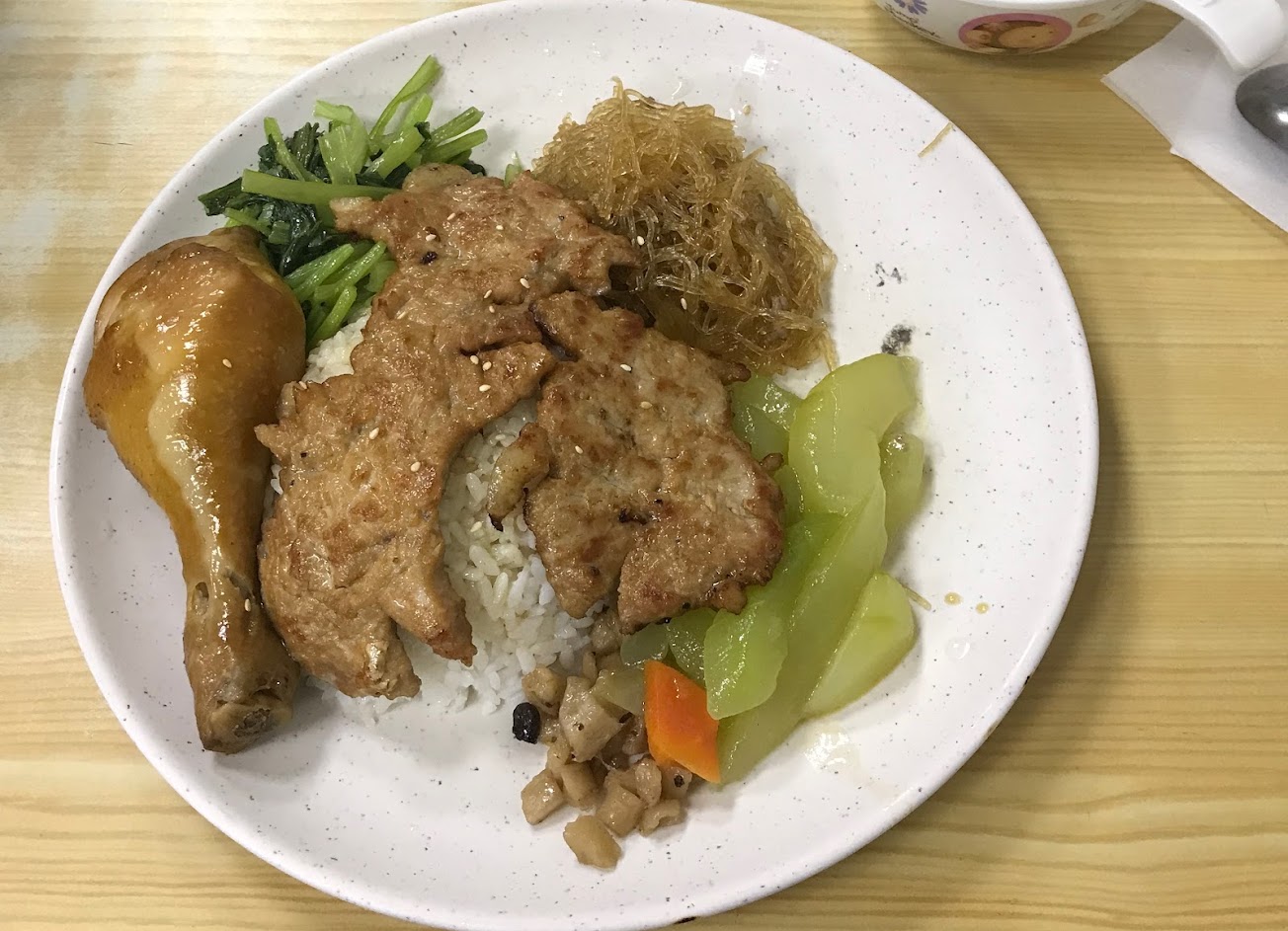 菜色味道好吃! 份量適中 還附一碗湯 蠻好喝的! 價格算便宜?? …