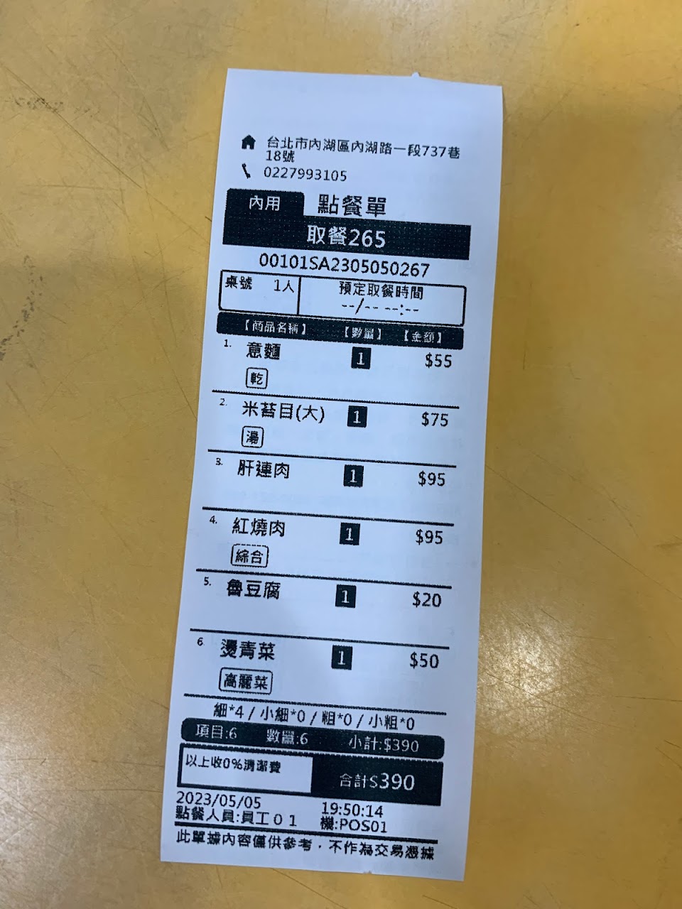於是拿單到出餐處 跟阿姨說:老闆 ,我們還有米苔目哦! 老闆:有!再做了 我:好! (3分鐘後 ) 結帳到阿姨走到我旁邊高8度跟我說:小姐!我們出餐是照 “號碼” 出的,57號的也還沒來!你58號要再等!!!