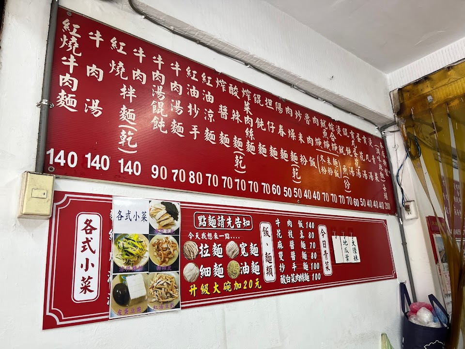 營業時間算是很長的傳統麵店,晚上10點多想要吃麵都還可以吃的到。牛肉麵的味道個人蠻喜歡的,微辣;第二喜歡的選擇是酸白菜肉絲麵。小菜自己淋上醬油,份量滿多的。