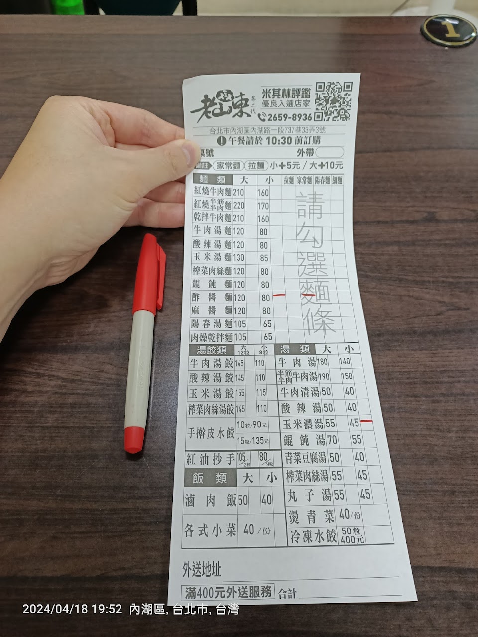 牛肉麵 120 + 家常麵 5
