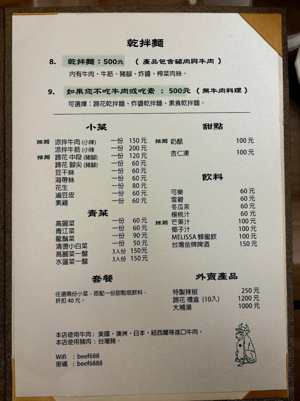 2024最新在地推薦餐廳的菜單_牛爸爸牛肉麵的菜單、圖片
