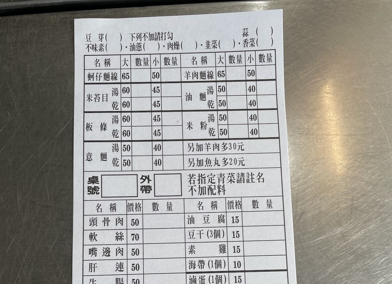 羊肉麵線有腥味,滷豆腐燙青菜普通,衛生尚可,米台目尚可,嘴邊肉好吃,