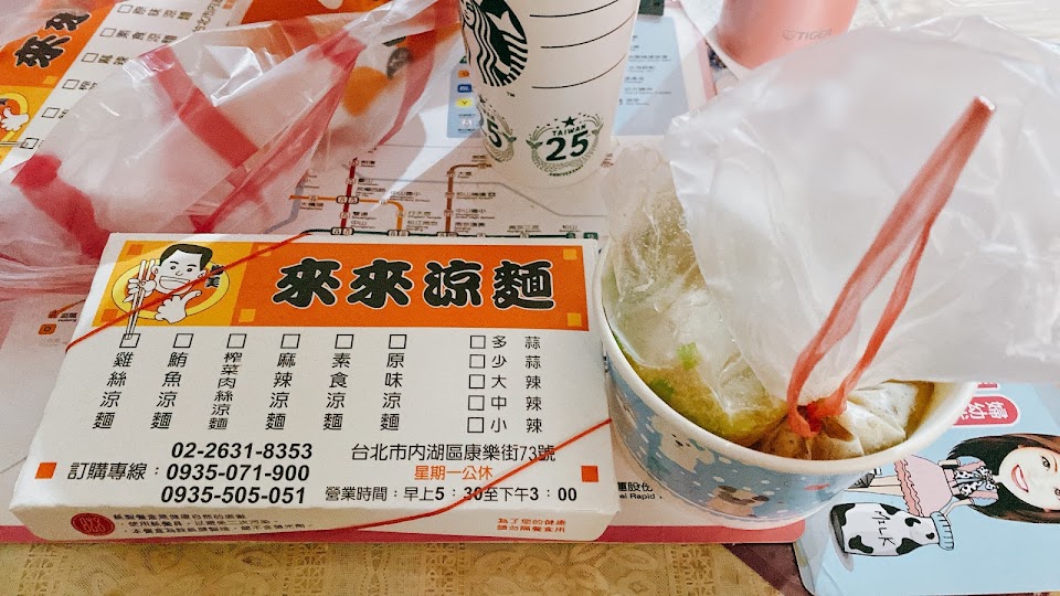 來來涼麵總店 台北市內湖區康樂街73號 (02)2631-8353 服務 外帶 餐點類型 早午餐 平均每人消費金額 $1-200