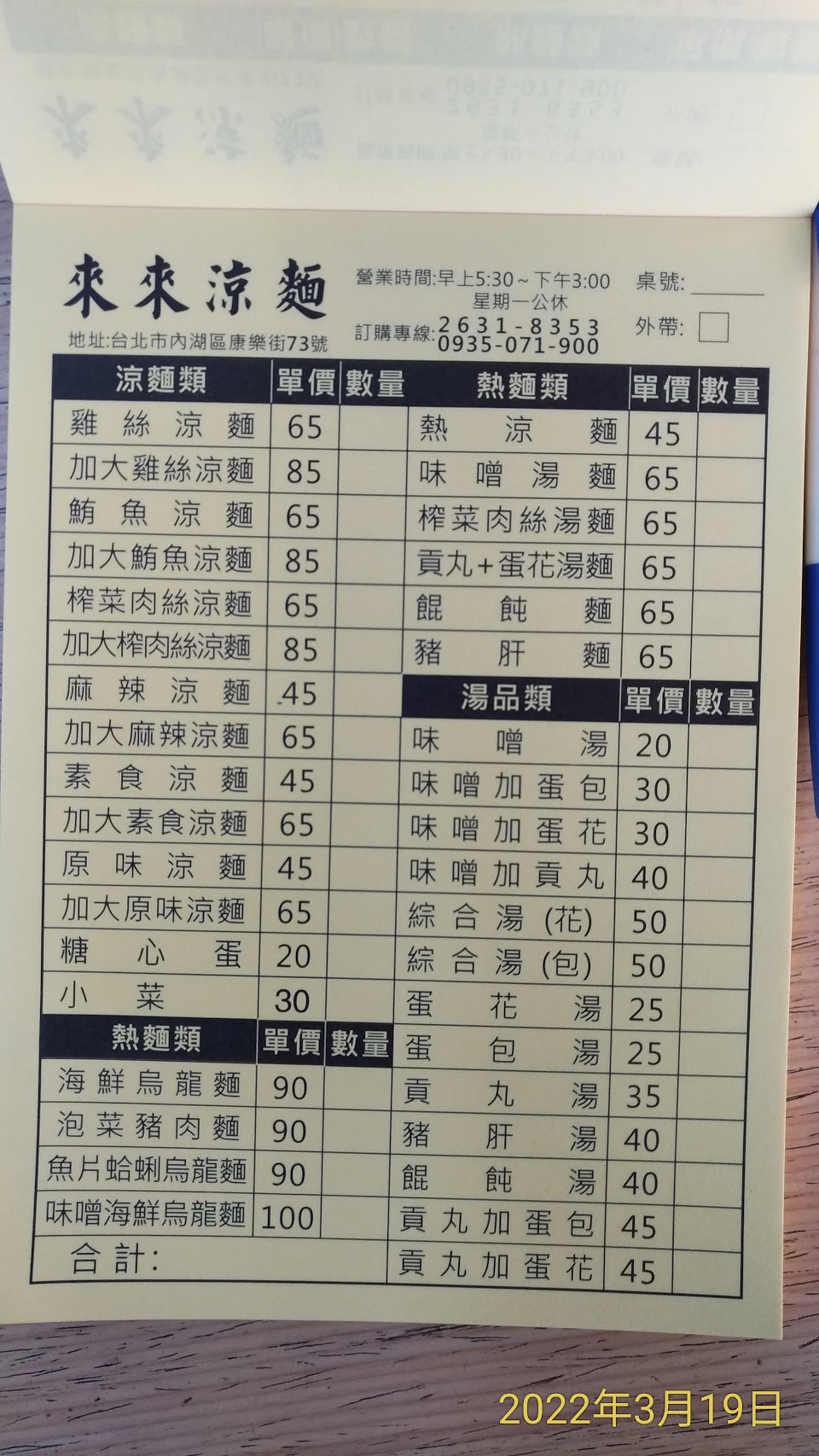涼麵份量少的可憐 連外帶湯麵也是少到讓人無言 價格調漲內容物不佳 真的要改進