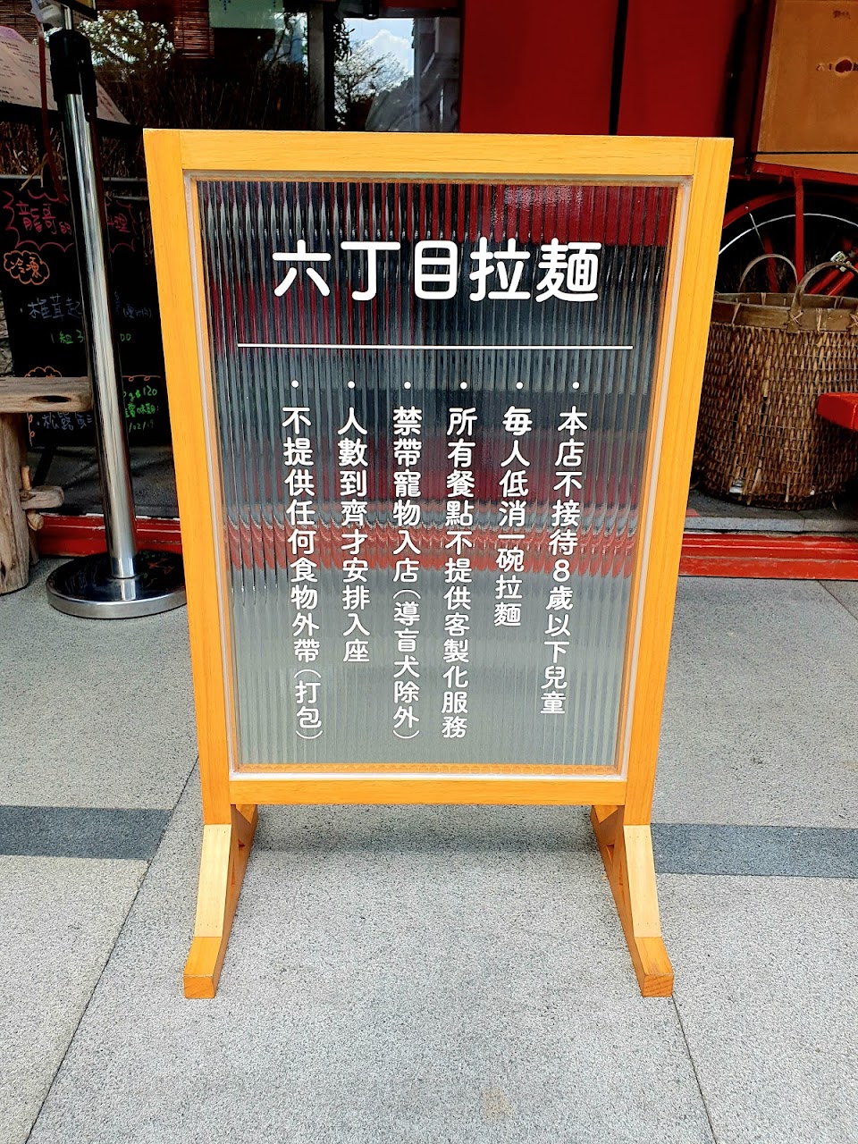 六丁目拉麵店湯頭濃郁麵條Q彈。真的是值得一吃再吃,也確實是本人在台灣吃過最好吃的拉麵店雖然每次去都要排隊確也心甘情願,都是為了一碗垂涎欲滴的好吃拉麵。但就因為都要排隊有一次在長長的隊伍來了一對年紀很大的老夫妻,就在大太陽的曝曬跟著排隊,真是於心不忍,目睹這情況真的感到店家主人也太沒有照顧自己的客人了。