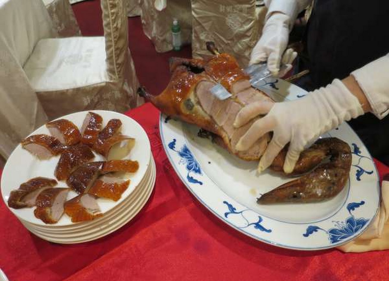 烤鴨現場現切一半皮帶肉花了46秒,另一半皮肉分開花了2分31秒,麵皮薄香包鴨皮吃還是吃得出來很脆的口感,純吃肉也很軟嫩不硬,一些小點心也都好好吃。