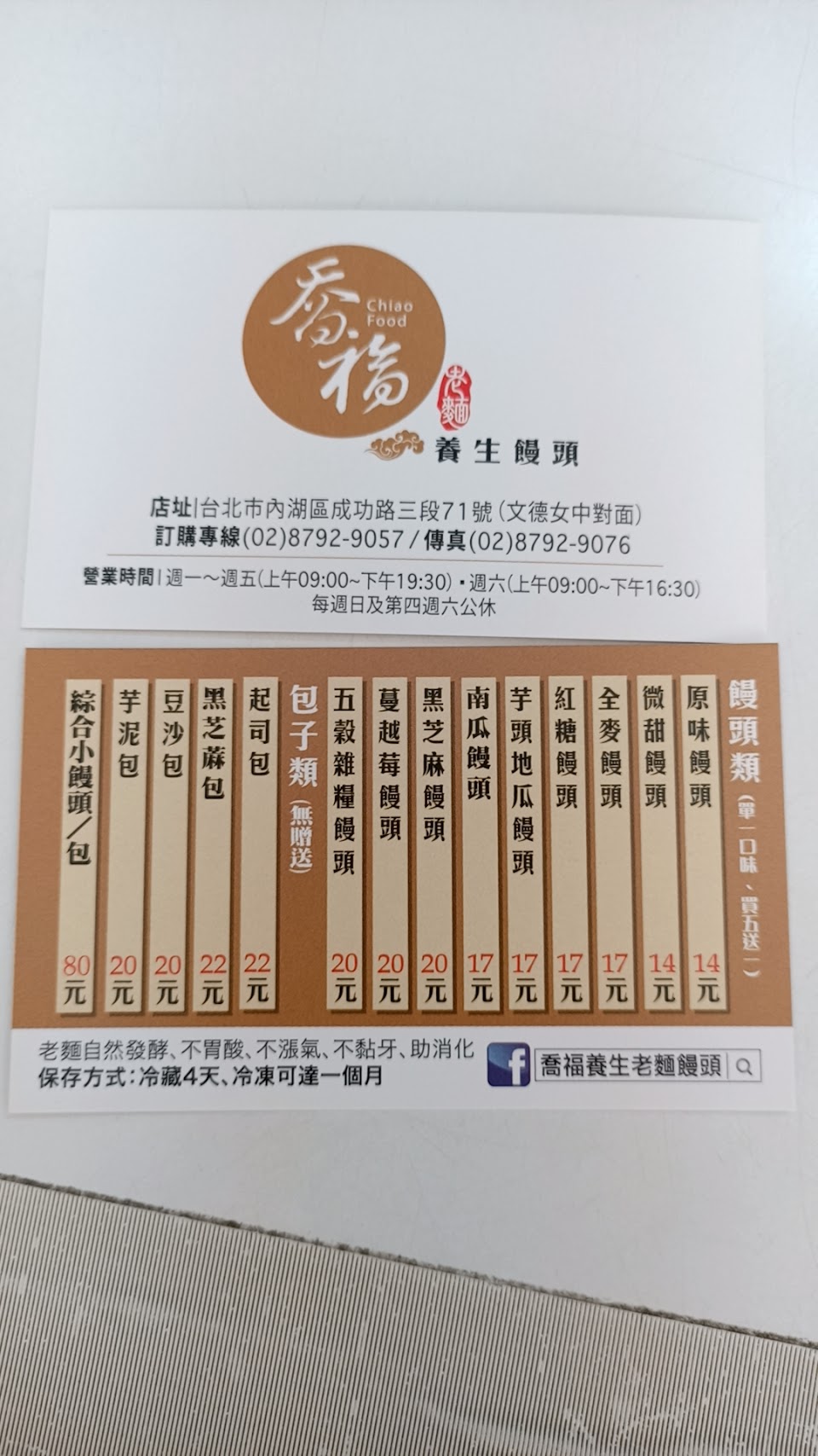 2024最新在地推薦餐廳的菜單_喬福養生老麵饅頭的菜單、圖片