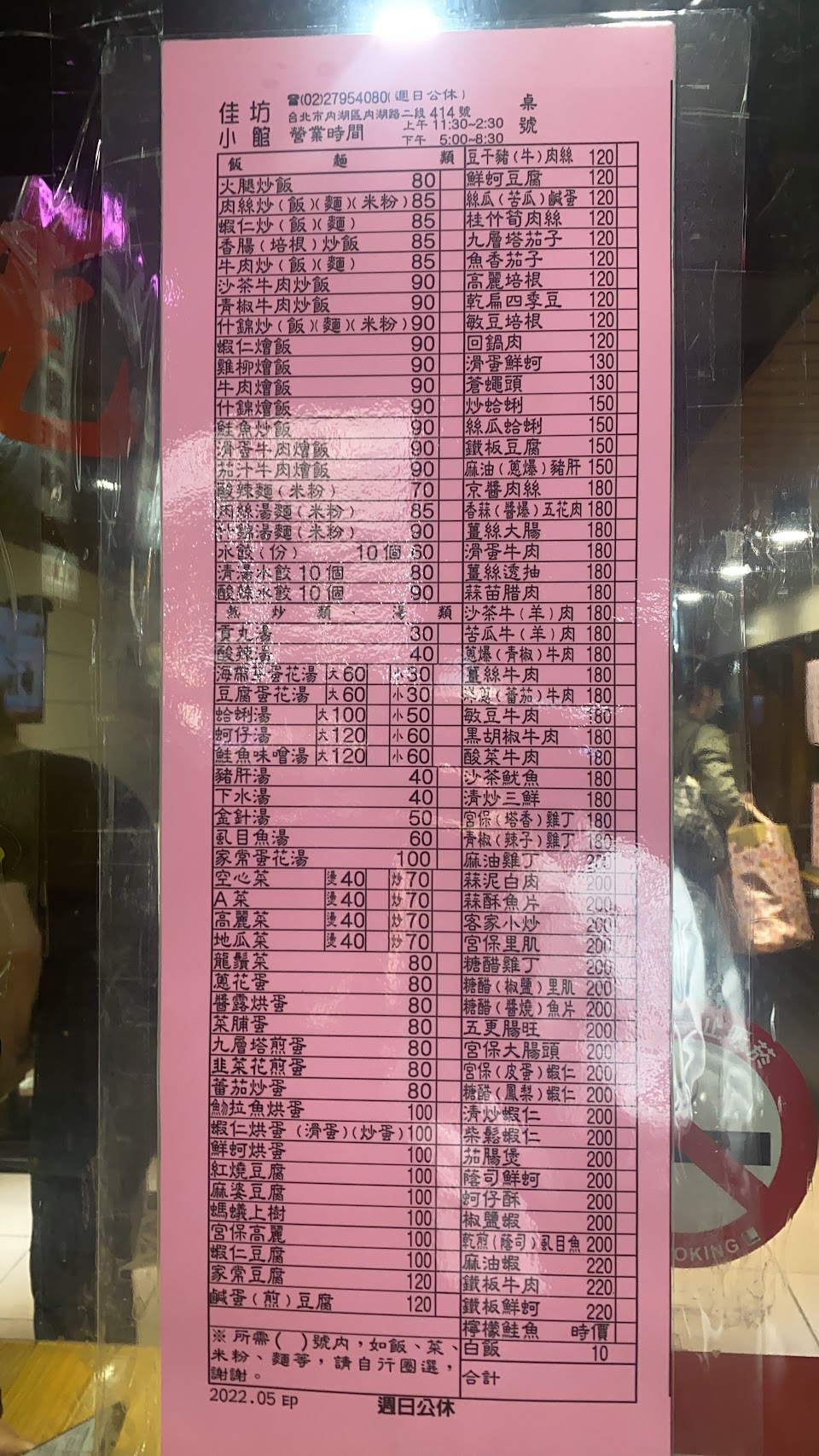 味道頗不錯,因為不想尖峰時間這家每次都要等很久才能吃到餐點,所以下午5:00一開門就入內用餐,點了蝦仁烘蛋炒蛋、豆乾豬肉絲、炒高麗菜、大蛤唎湯、肉絲湯麵外加4碗白飯,共$515,3大1小有吃飽,每道菜都不踩雷,不過炒高麗菜的份量不多,下回會改點份量頗夠的燙青菜取代,另外肉絲湯麵的黃油麵質地口感有點鬆散、不夠彈Q,但湯麵很大一碗料很足,一人單點麵類應該會飽足感十足。蝦仁烘蛋的蝦仁份量不馬虎、烘蛋十分好吃;蛤唎湯很鮮美。週日休息別撲空了。2022.09.09