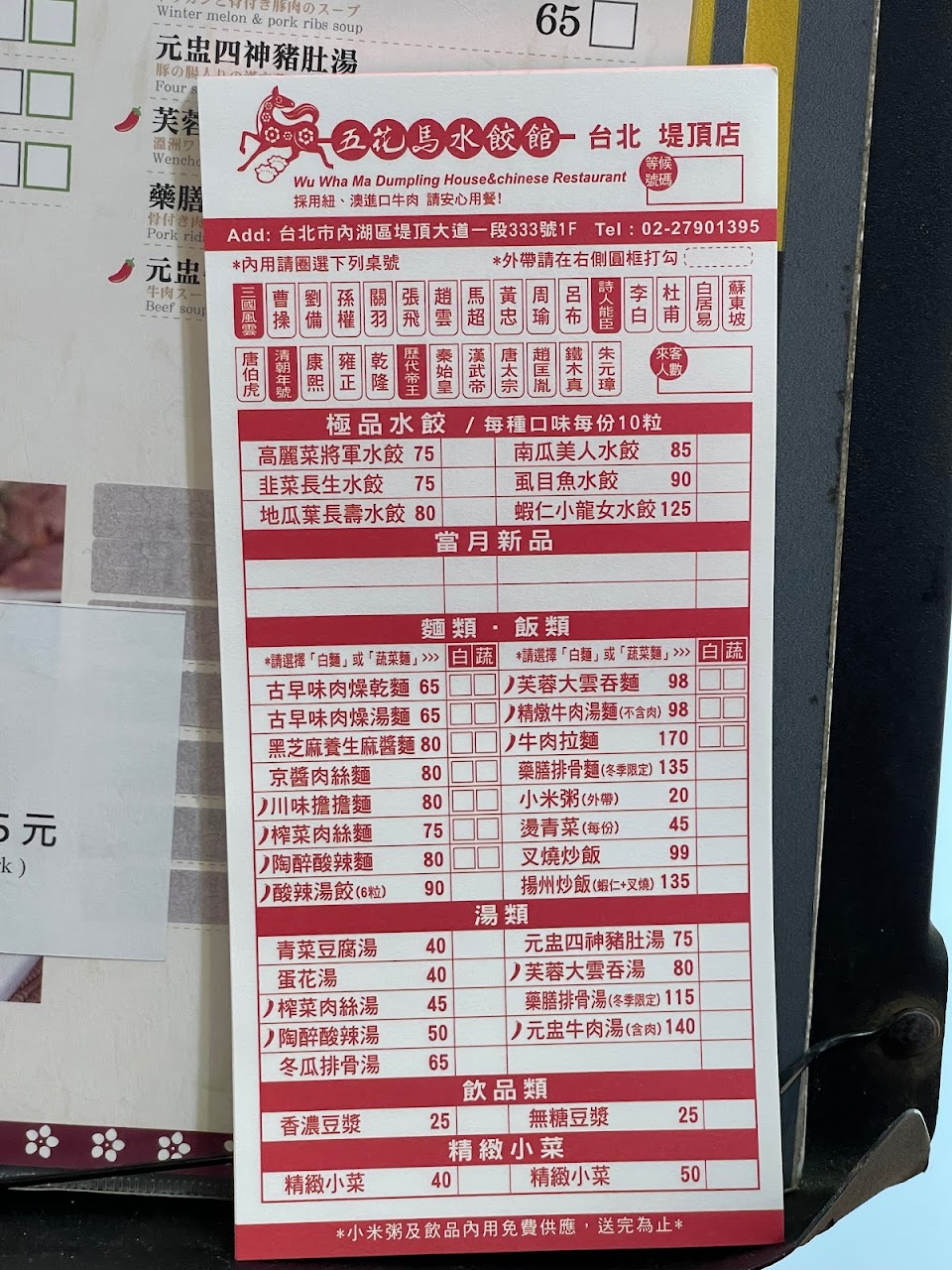 2024最新在地推薦餐廳的菜單_五花馬水餃館-臺北堤頂門市的菜單、圖片