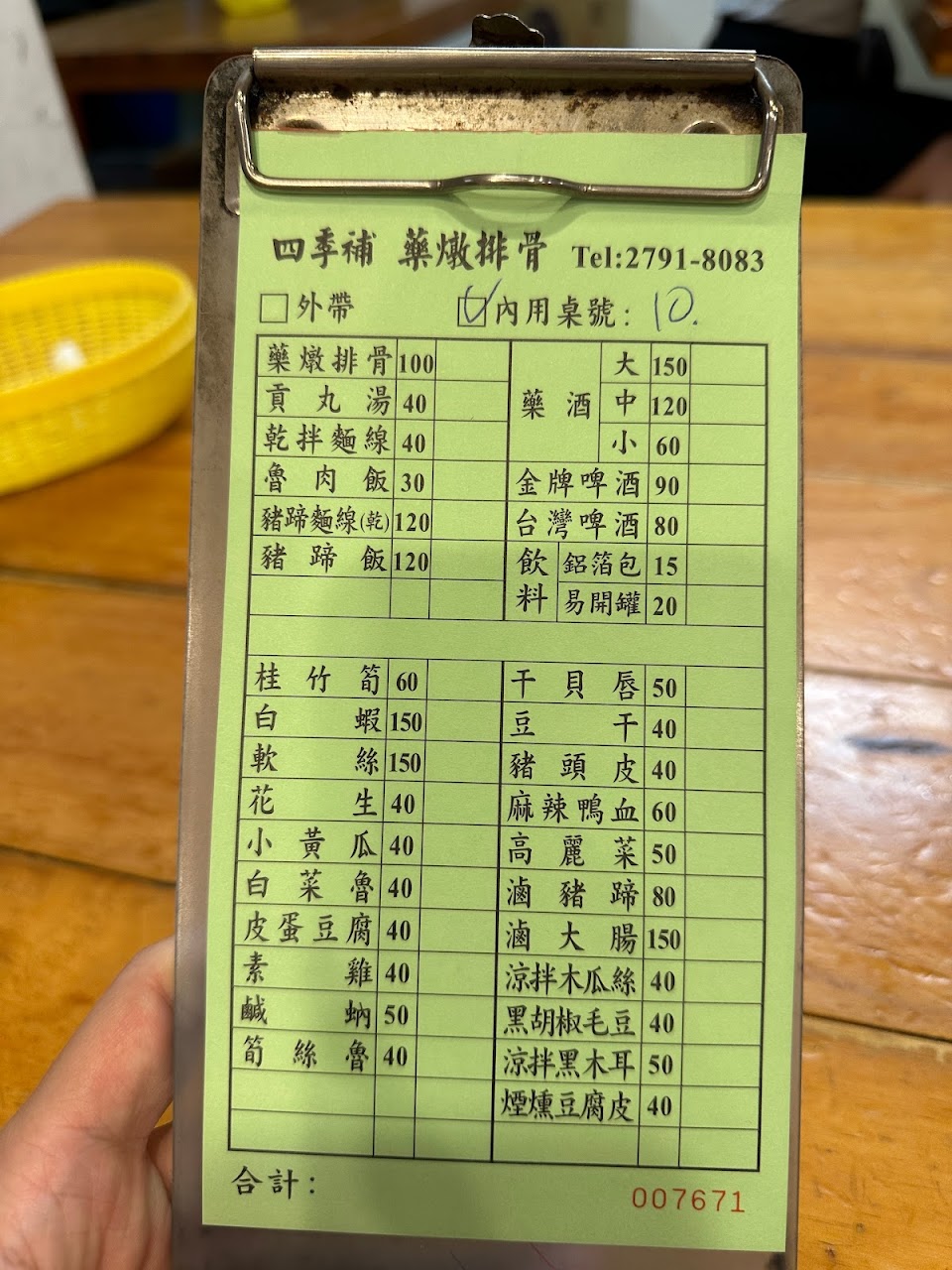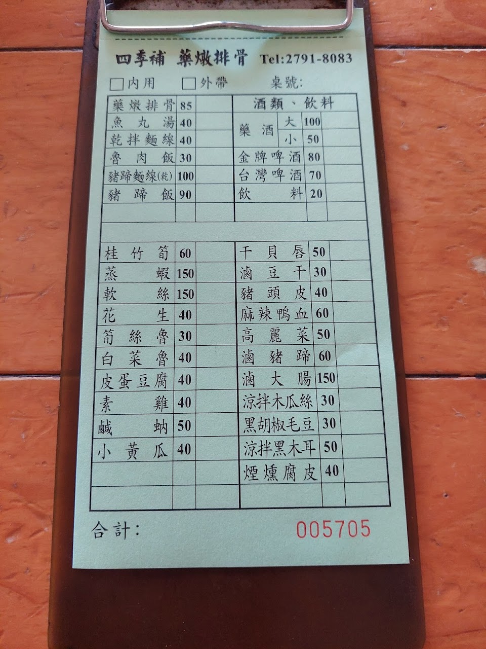 2024最新在地推薦餐廳的菜單_四季補藥燉排骨的菜單、圖片