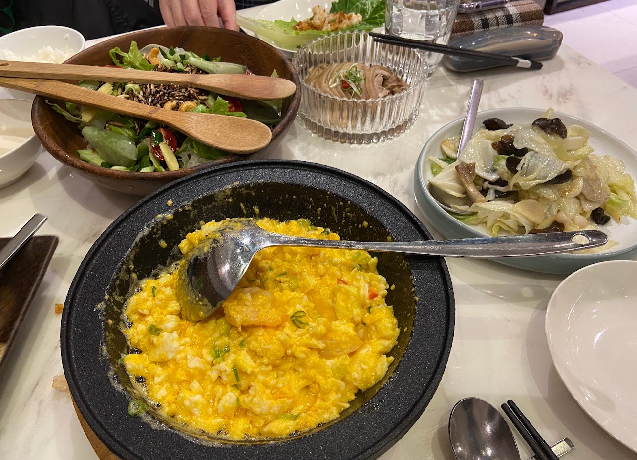 2022/12/17初訪,每道菜的調味適中,不會太油或太鹹,很喜歡五花肉黃瓜薄片沾蒜味醬油,掛在鐵架上很像曬棉被,東坡肉很香可惜肉略柴,金沙蝦仁炒蛋滿夠味,蘿蔓炸蝦酥脆又不會太油,湯品也很鮮美,其他道菜都在水準之上,幾乎沒有雷,酥炸銀絲卷佐煉乳也很棒,最後的提拉米蘇現場表演蠻有噱頭,不會太甜膩的一道甜點,店內裝潢漂亮,廁所也乾淨,是會回訪的店