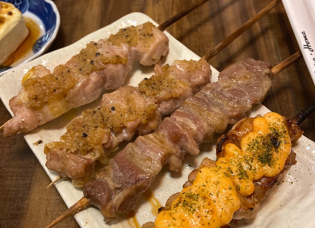 烤飯糰扎實外皮烤的很軟脆,烤雞肉串也很好吃。「厚蛋燒」這名字讓我一開始以為是壽司店會出現的那種,但其實是一般的玉子燒,但也很好吃!