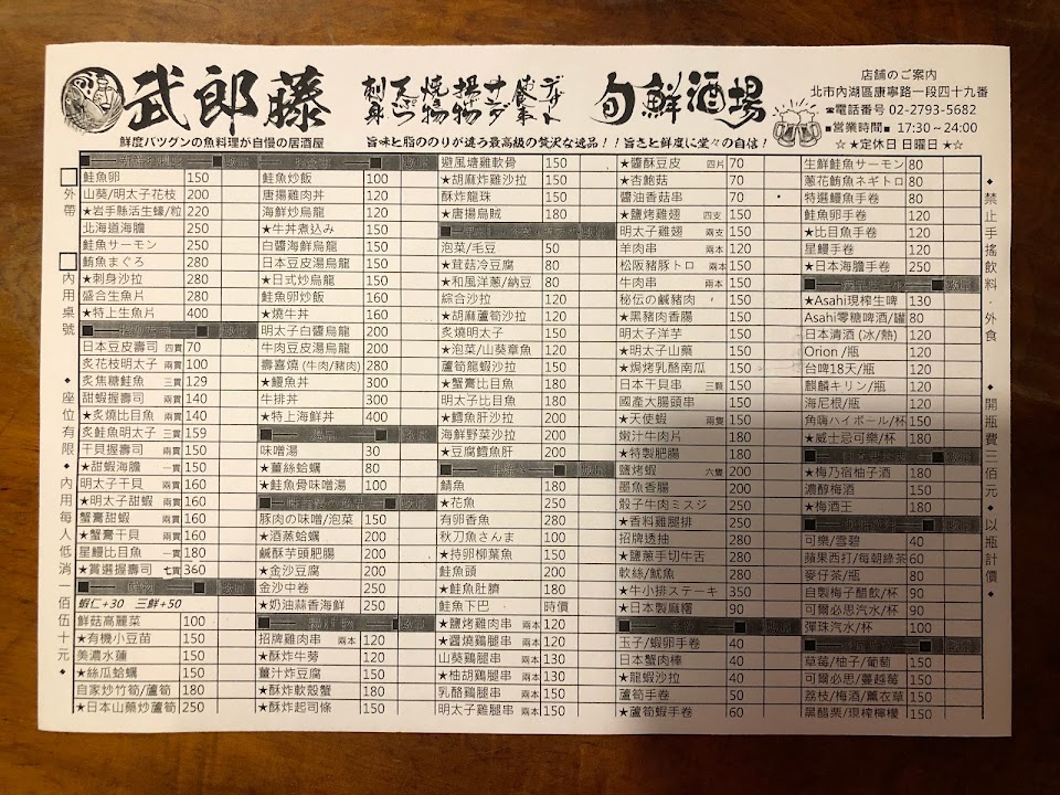 2024最新在地推薦餐廳的菜單_武郎藤 大眾酒場 居酒屋的菜單、圖片