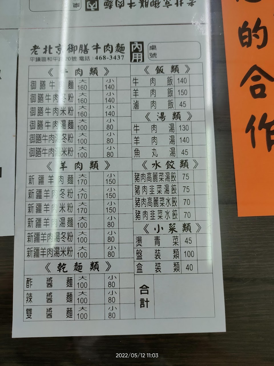 2024最新在地推薦餐廳的菜單_老北京御膳牛肉麵的菜單、圖片