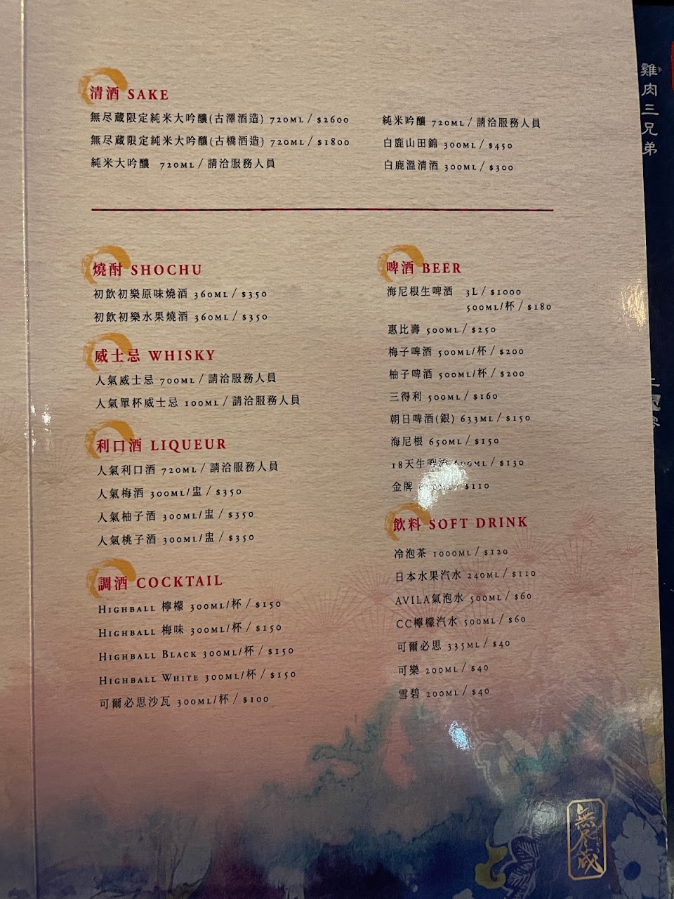 除了提供無酒精飲料外,無盡藏居酒屋還供應各種類型的酒類,包括清酒、威士忌、啤酒、Highballs、利口酒和韓式蒸餾酒品。這讓顧客有更多的選擇,以搭配他們喜愛的餐點。
