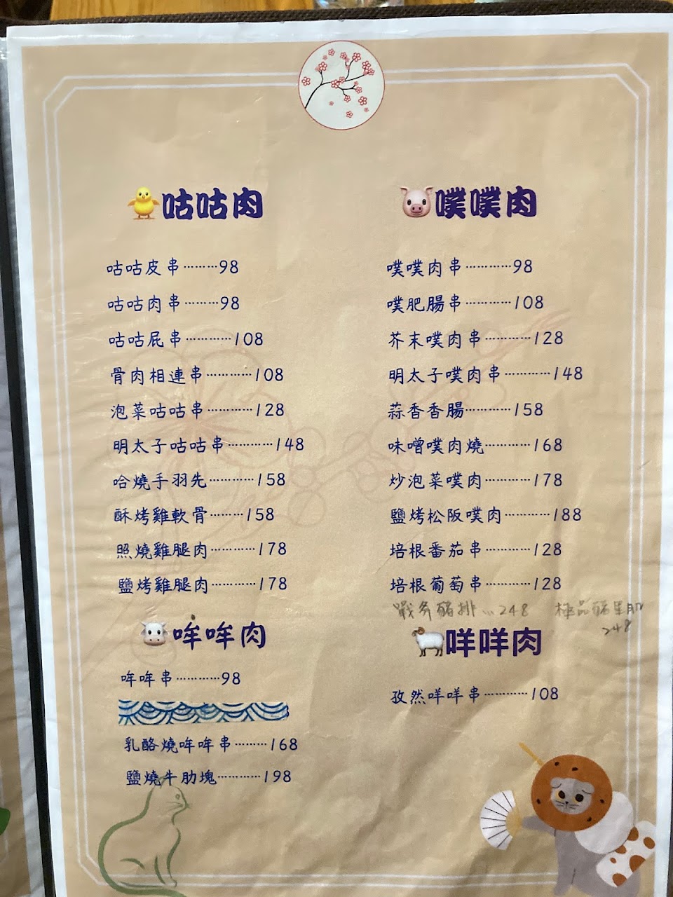 推薦(順序):炒烏龍麵?烤香菇?雞肉串?炸牡蠣?豬肉串?胡麻豆腐
