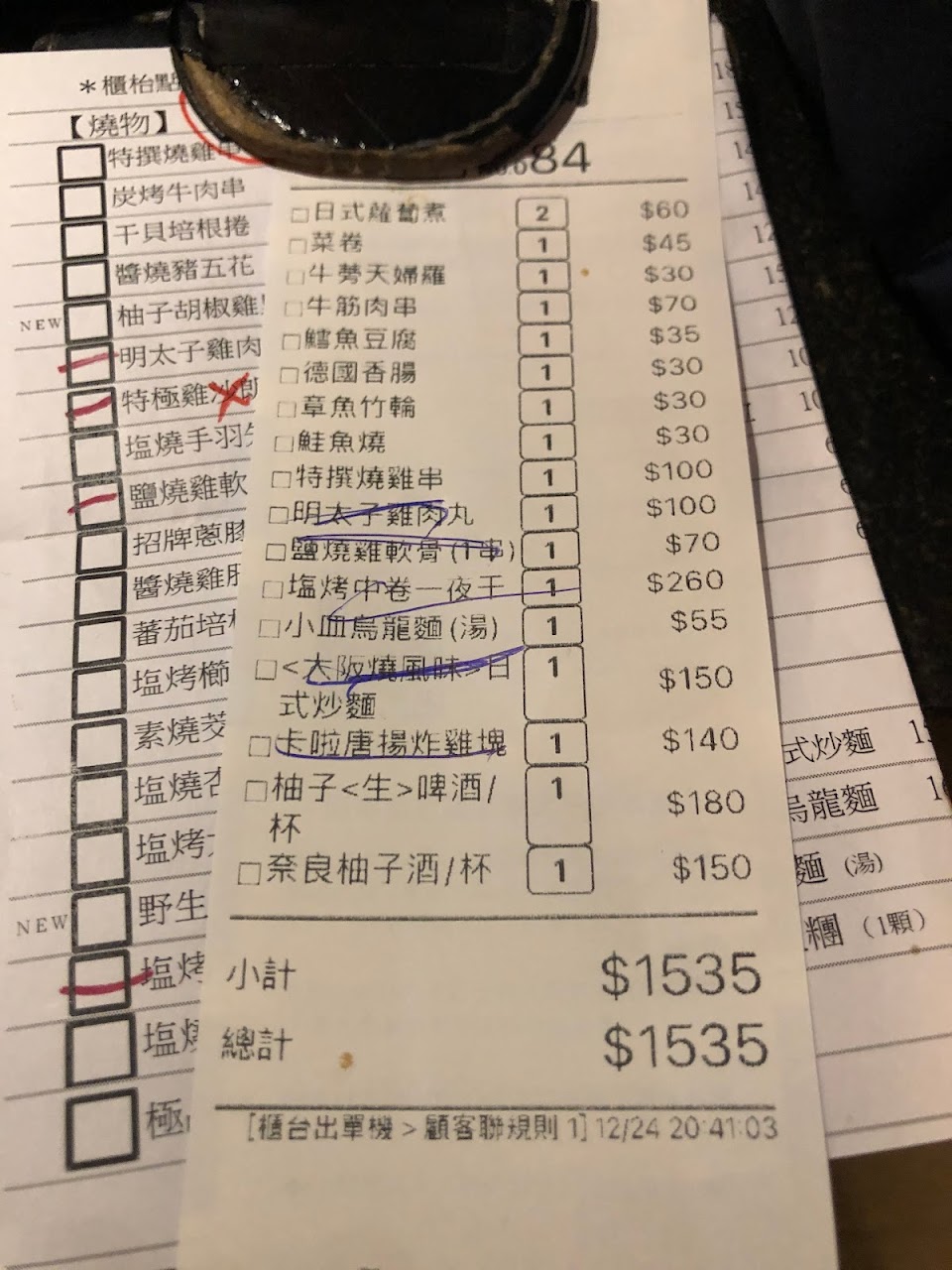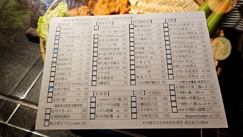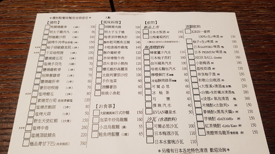 假日6點到已經要排隊還好大約排20分鐘,翻桌率還算快,老闆娘很客氣,只是還是要等,先畫單先點餐⋯等候安排座位,黑輪是櫃檯旁邊點,續點要櫃檯拿有點小麻煩,其餘燒烤可以跟服務生直接叫,餐點還不錯吃,給四顆星,等候無法提前預約