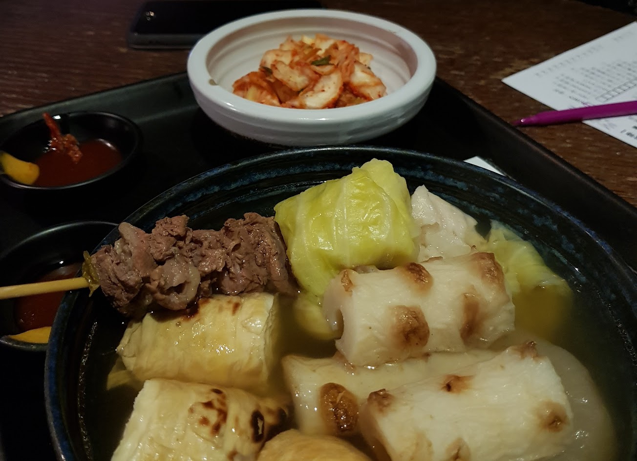 非常日式風味的關東煮,老闆娘曾到日本拜師學藝所以口味非常道地。東西都很好吃,其中大推牛蒡天婦羅、娃娃菜、鱈魚豆腐、串燒類,適合三五好友一起坐著聊天慢慢吃,也適合一個人想悠閒吃飯慢慢發呆。