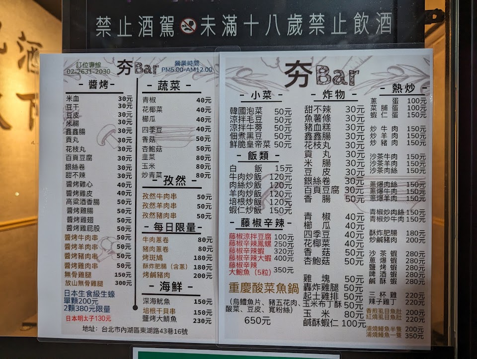 2024最新在地推薦餐廳的菜單_夯Bar串燒居酒屋的菜單、圖片