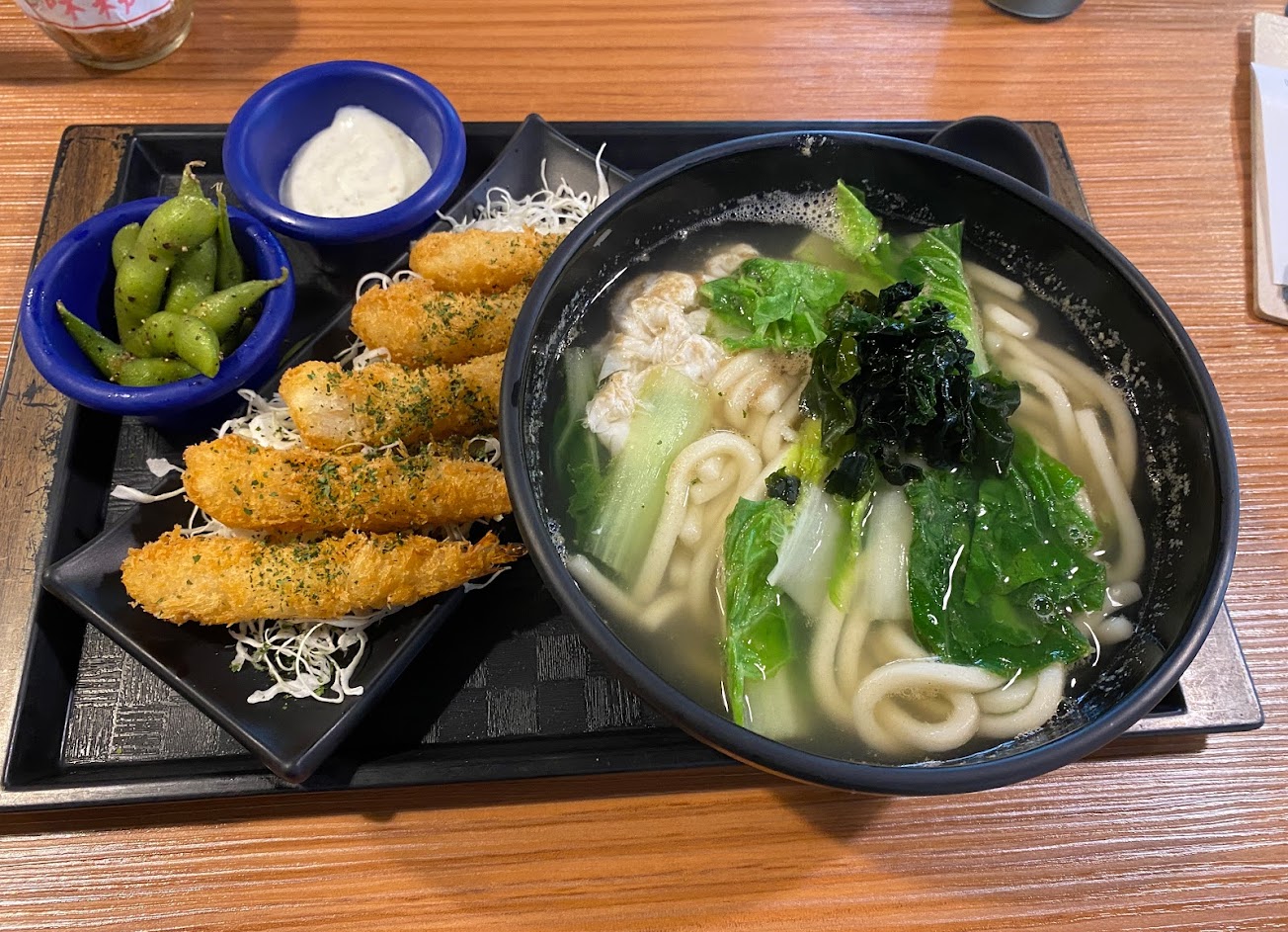 咖哩烏龍的醬也過多,會讓口味偏鹹與膩,炸蝦提供五隻,提供的醬料是整體最有記憶點的部分,爽口不膩。